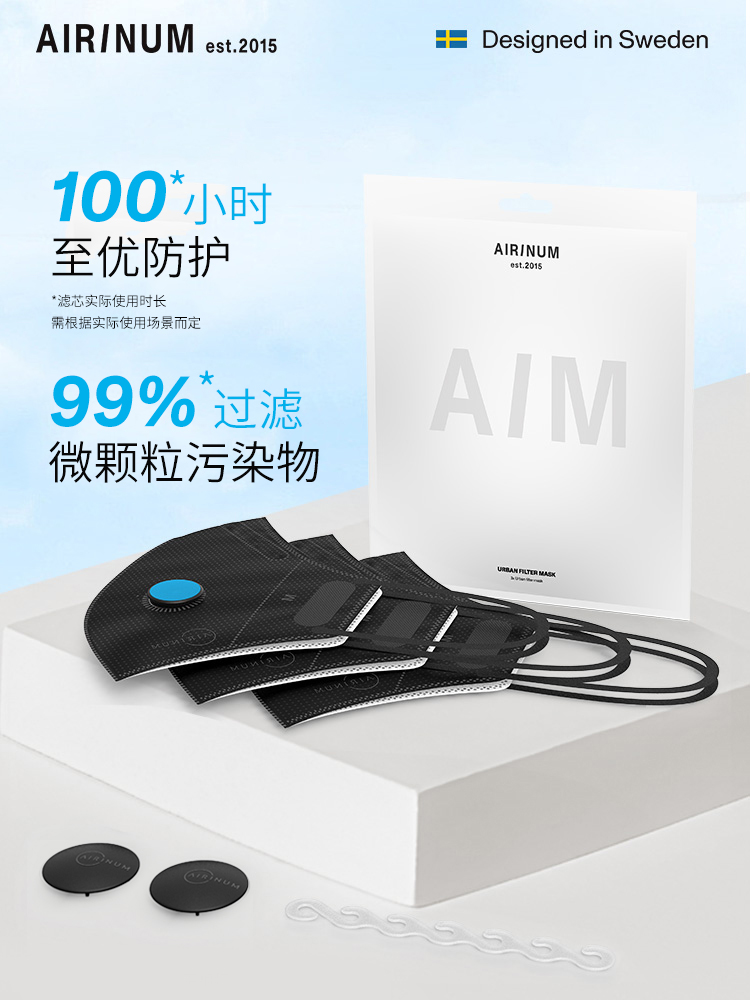 AIRINUM睿铂 防护KN95口罩防雾霾防晒透气立体活性炭呼吸阀防粉尘
