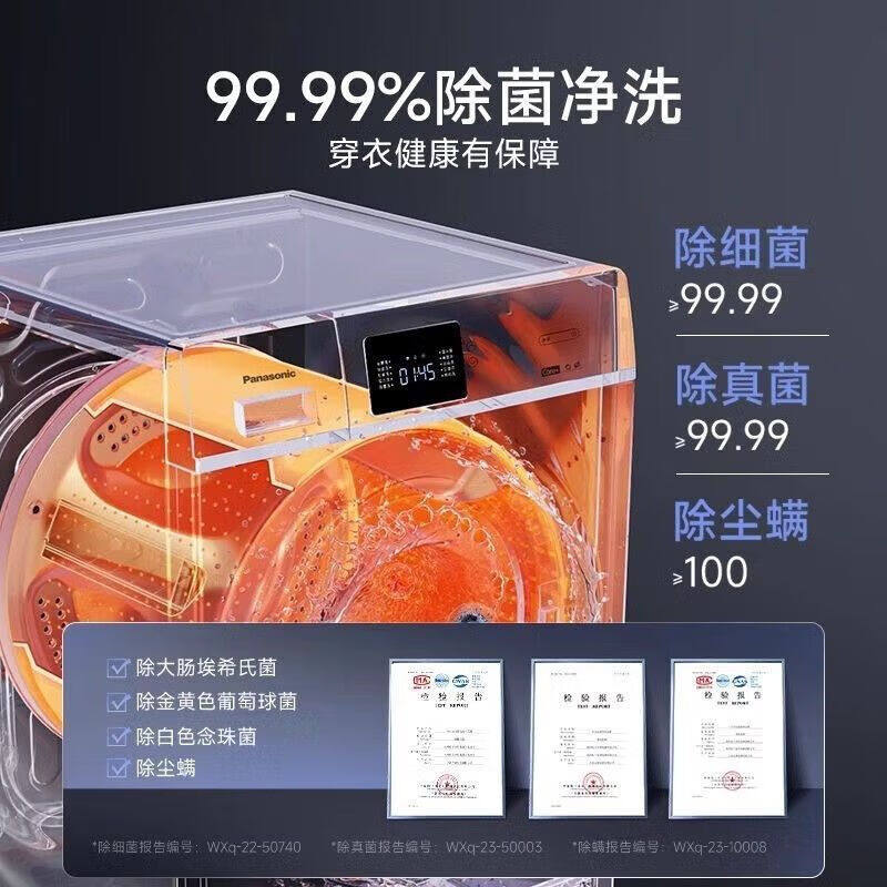 松下10KG全自动滚筒洗衣机95°C除菌除螨羽绒洗95°C除菌洗