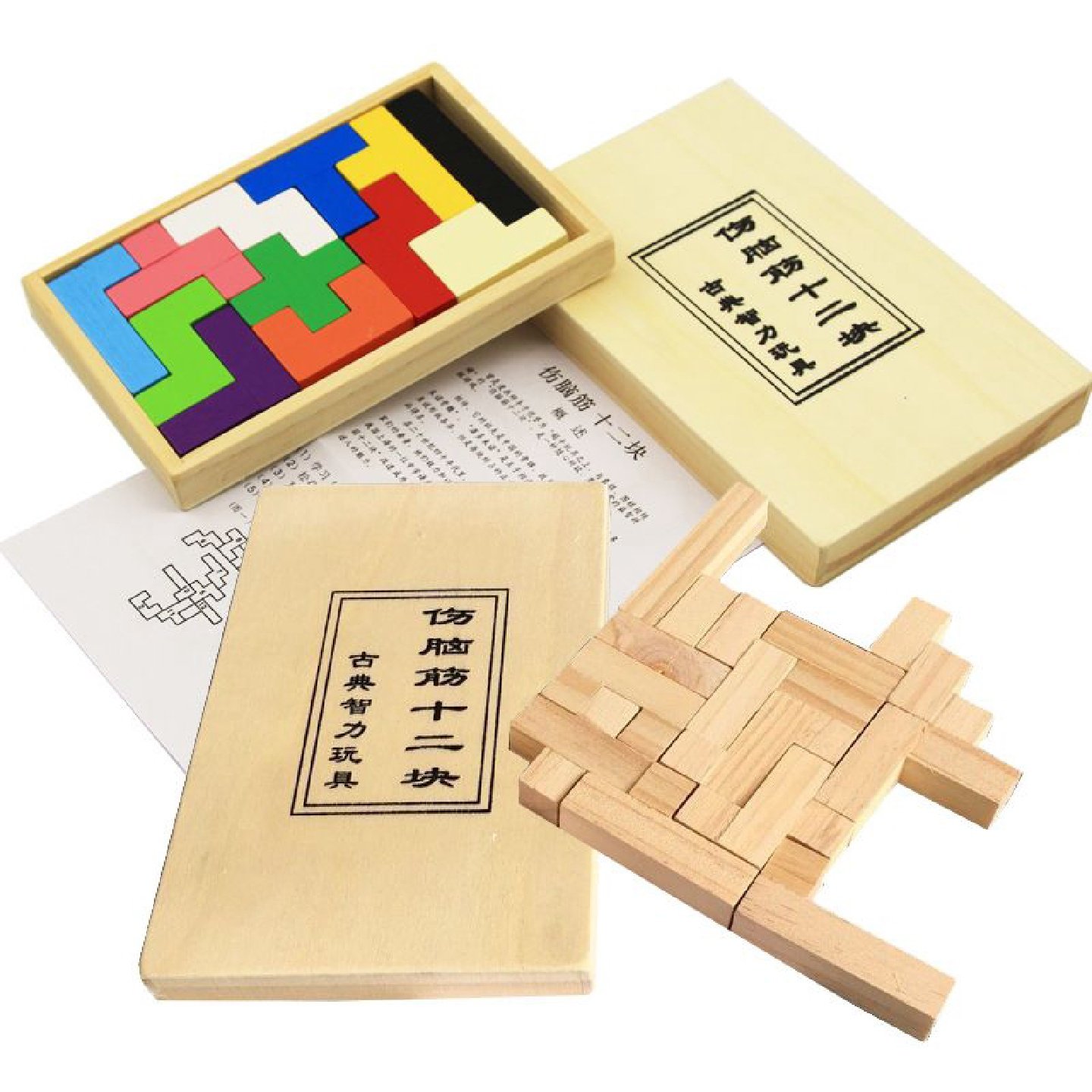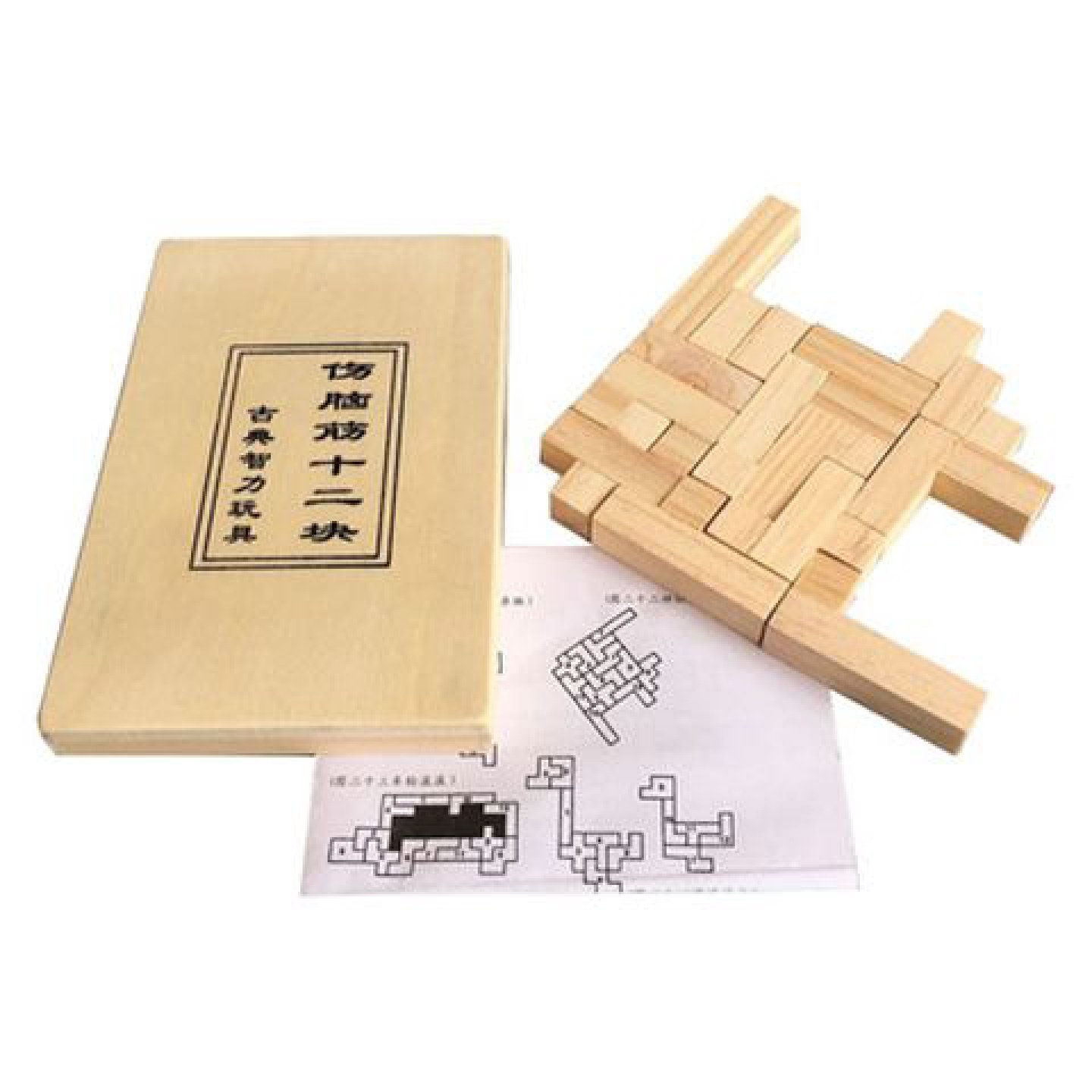 1古典益智力创意玩具彩色伤脑筋十二块 成人榉木华容道九连环解锁