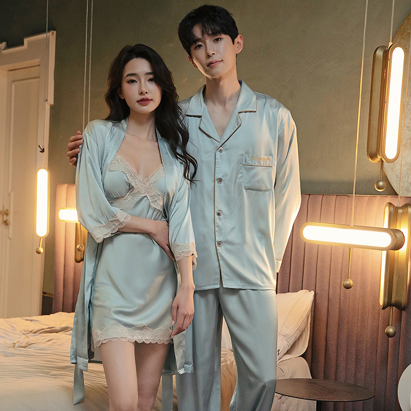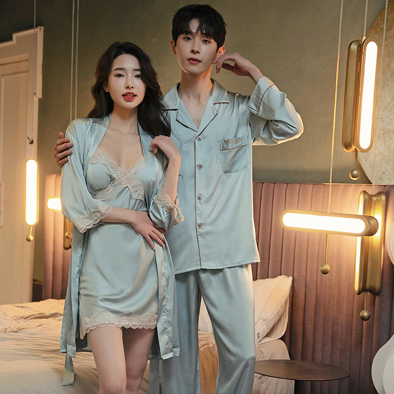 情侣睡衣春秋款男长袖翻领家居服网红风夏性感睡裙女两件套高级感