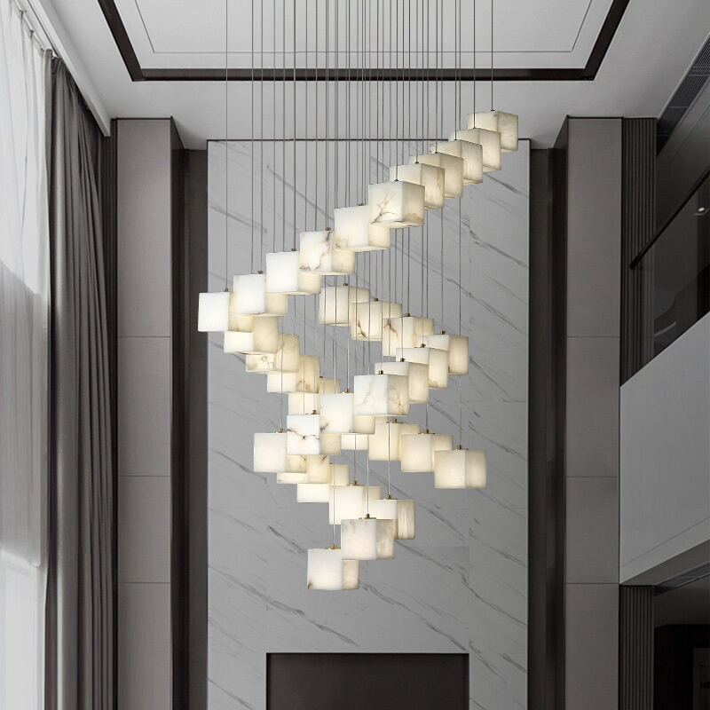 楼梯长吊灯别墅旋转loft复式楼客厅大气大吊灯设计师云石全铜灯具