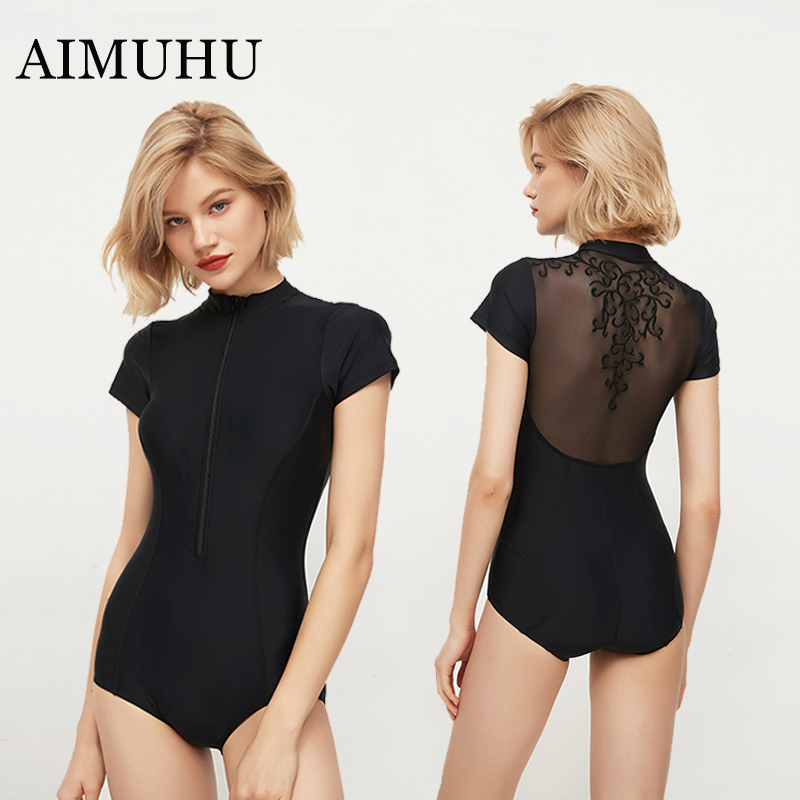 连体泳衣女纯欲高级感新款时尚潜水服保守显瘦遮肚网纱聚拢游泳衣