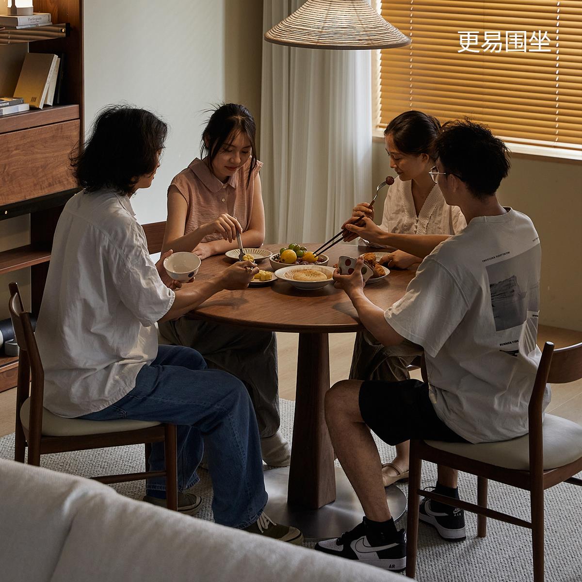 续写黑胡桃木圆桌复古实木餐桌小户型简约家用圆形休闲餐桌椅组合