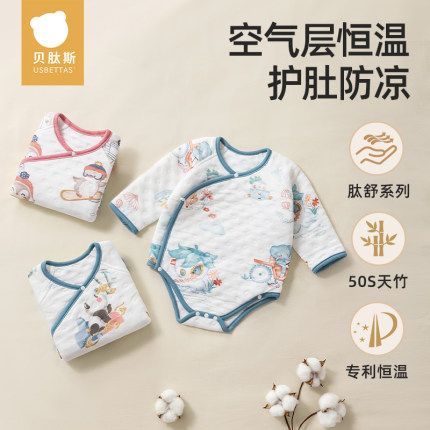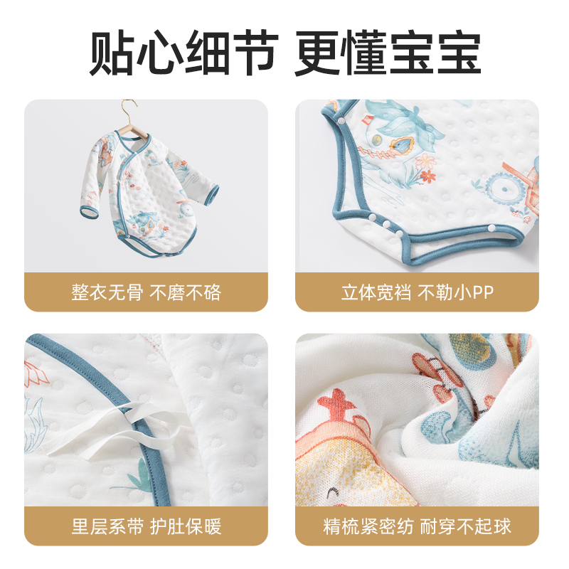 贝肽斯婴儿包屁衣春夏季长袖打底衣服连体衣宝宝透气a类三角哈衣
