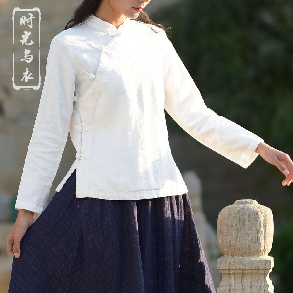 己荷原创复古中国风棉麻斜襟盘扣上衣中式唐装茶服女长袖七分袖秋