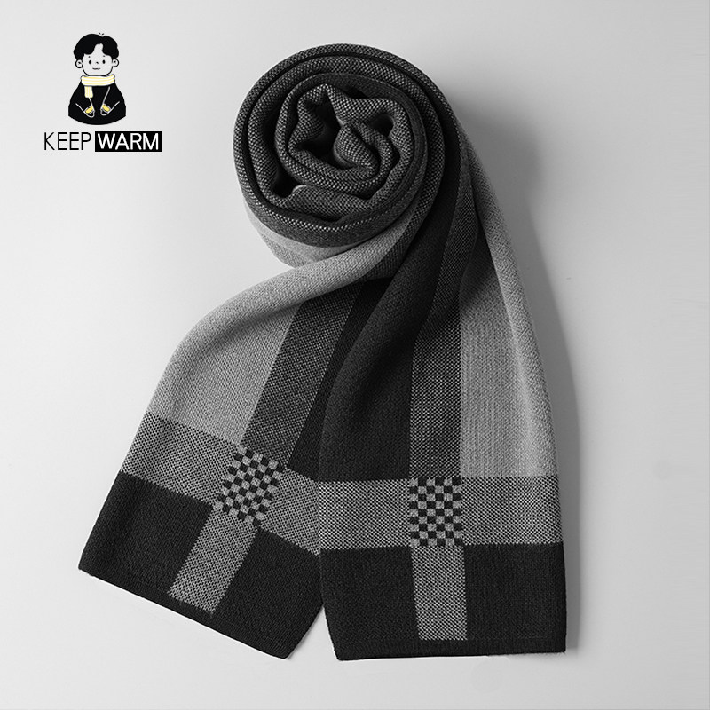 纯黑色男围巾韩版年轻人格子羊毛围巾男女士冬季情侣学生百搭围脖