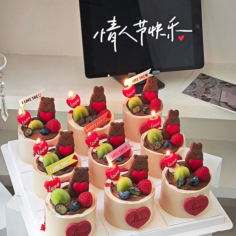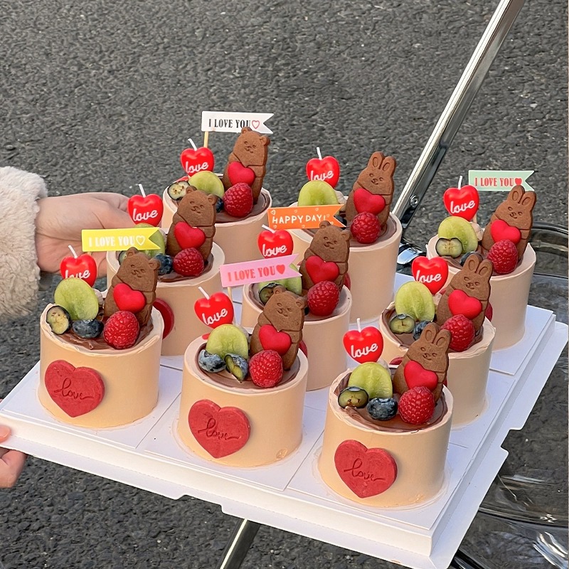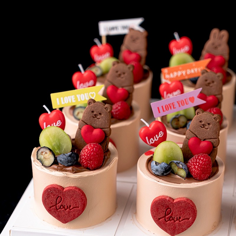 情人节蛋糕装饰小熊兔饼干插牌爱心插件生日慕斯烘焙甜品装扮摆件