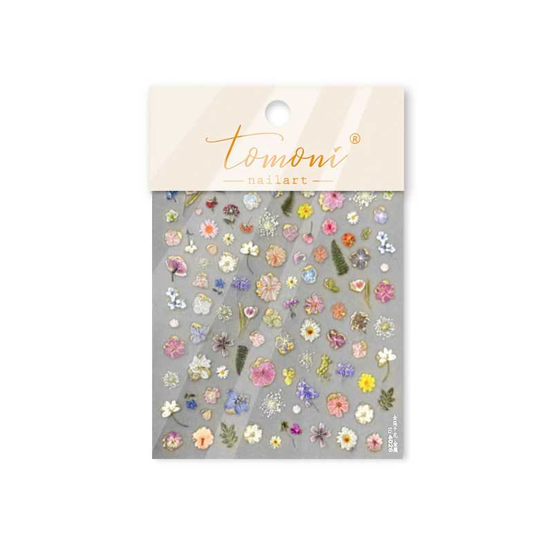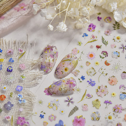 粉调干花贴纸仿真烫金美甲贴纸
