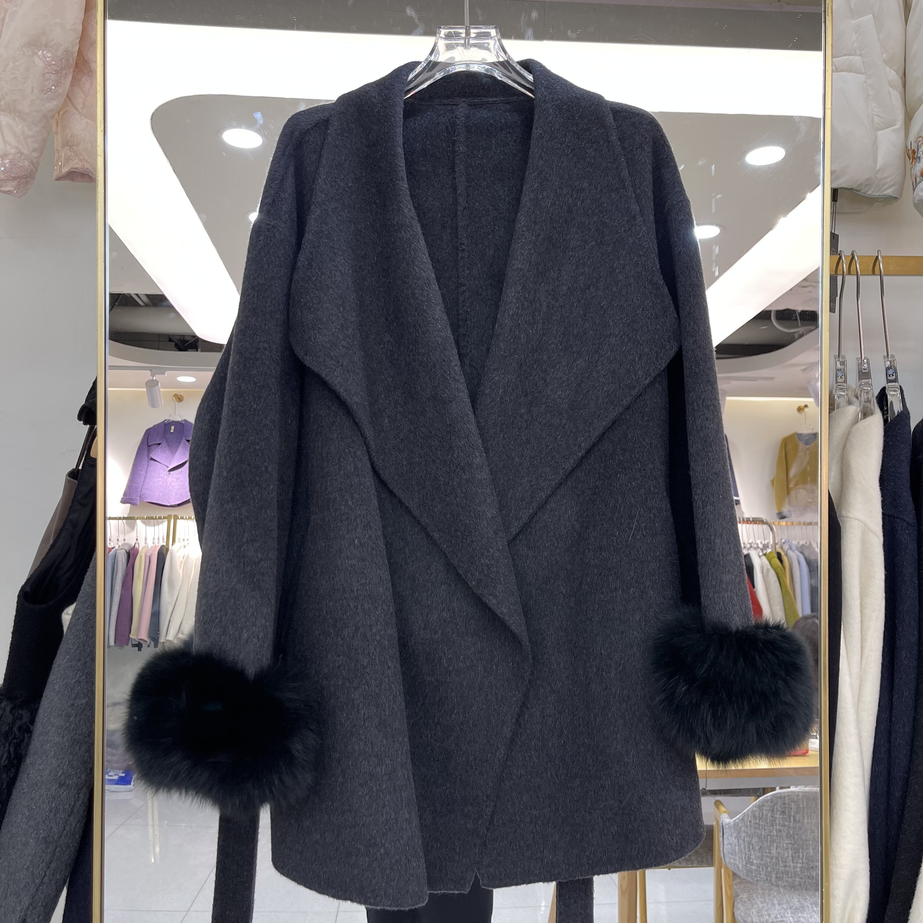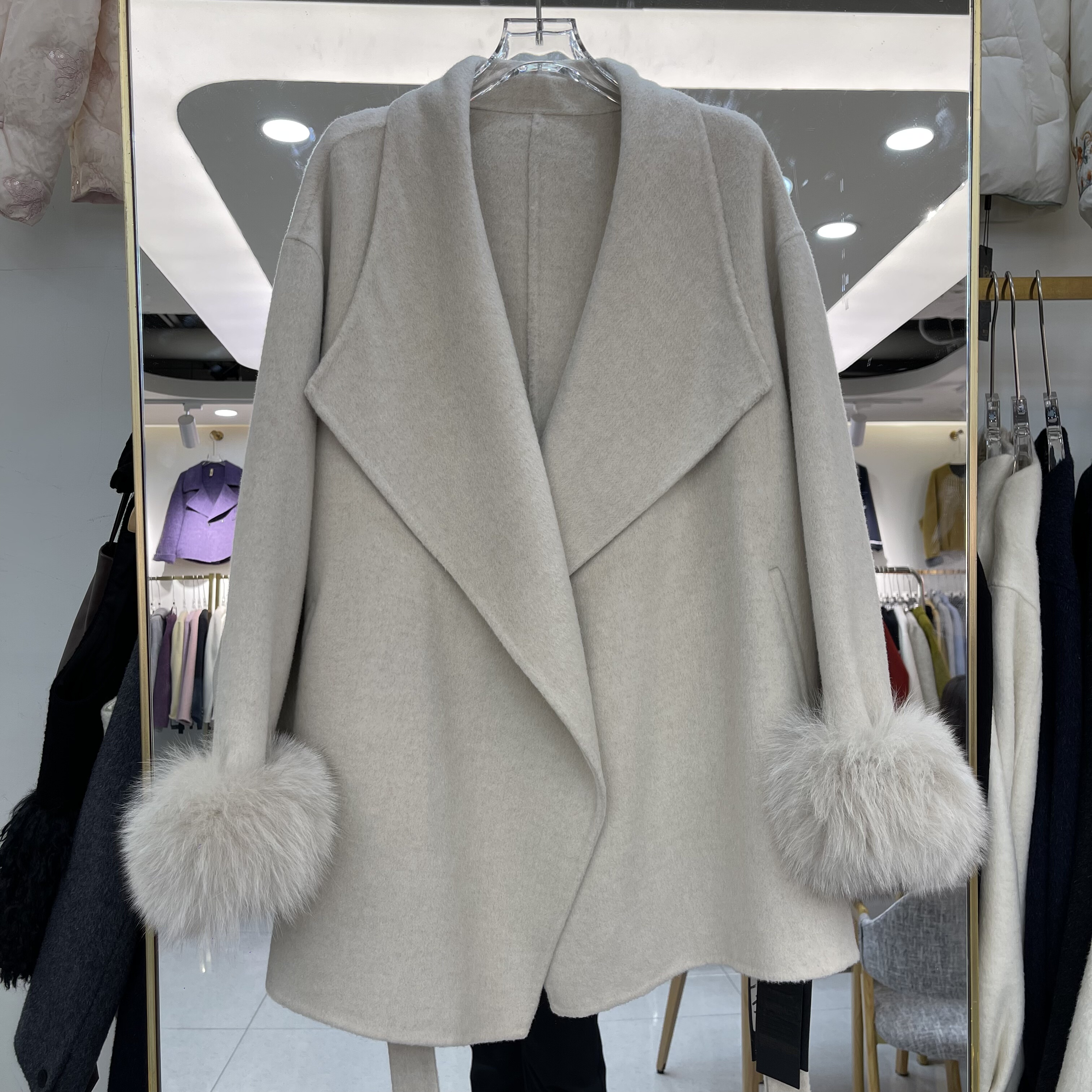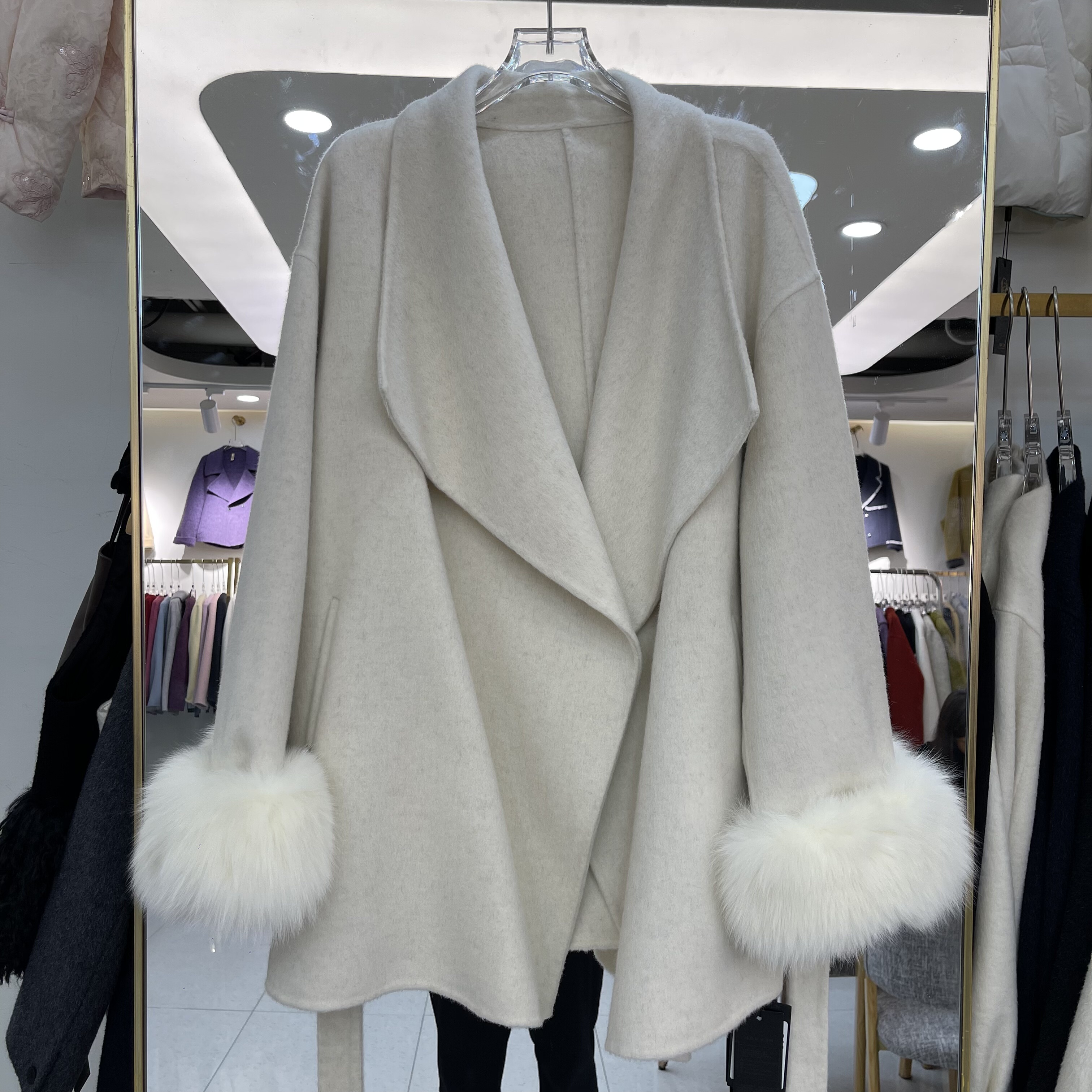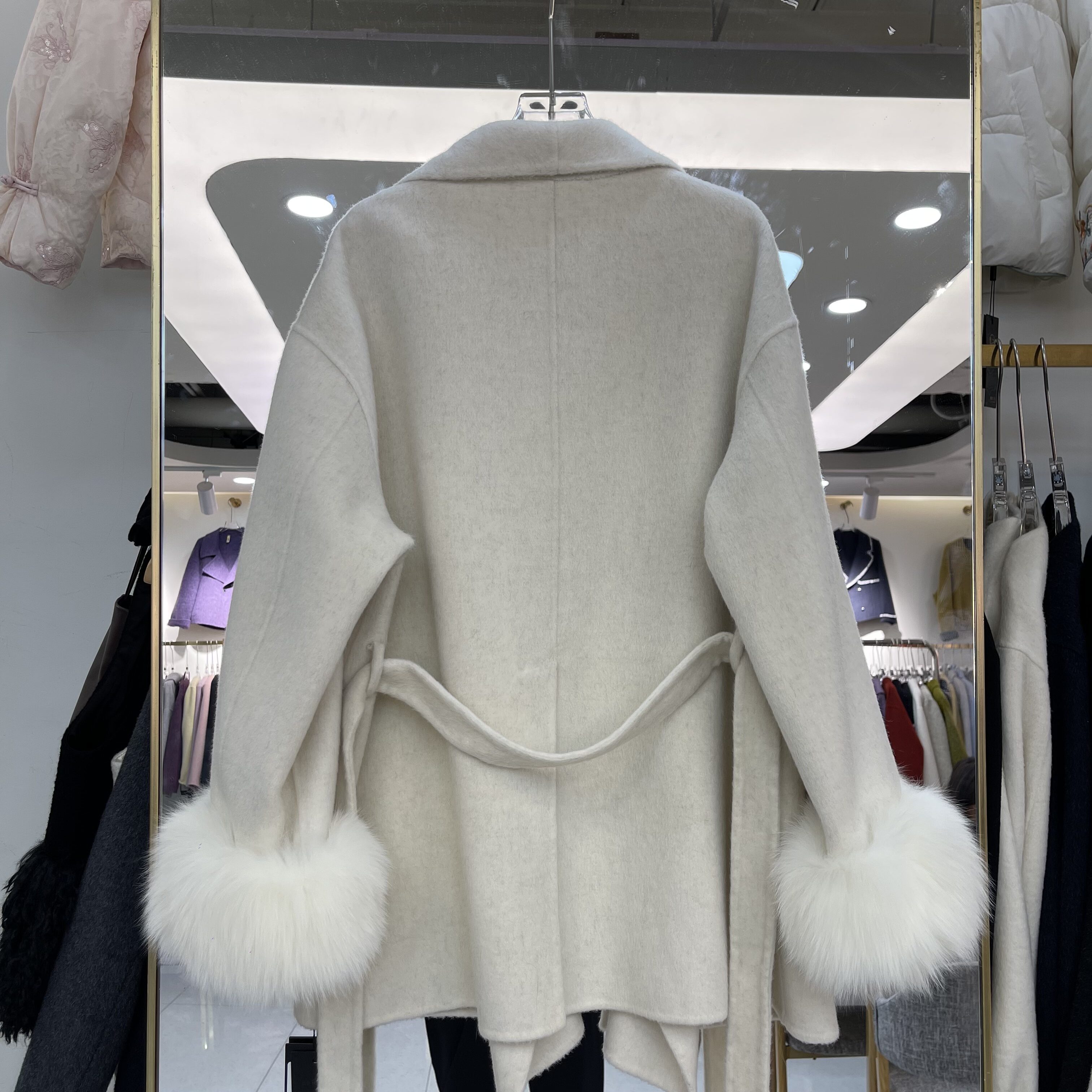 狐狸毛袖口2025冬季新款韩版时尚羊毛呢外套女中长款双面羊绒大衣