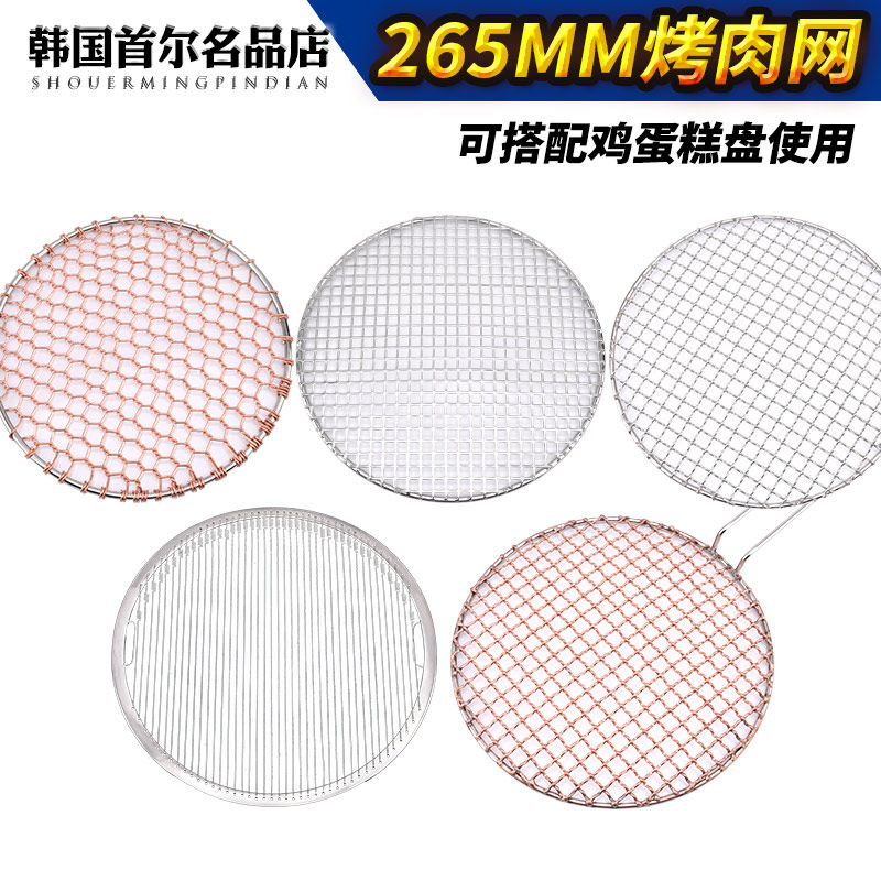烧烤网圆形家用商用烤网不锈钢用具带把手篦子不锈钢网铜网碳烤网