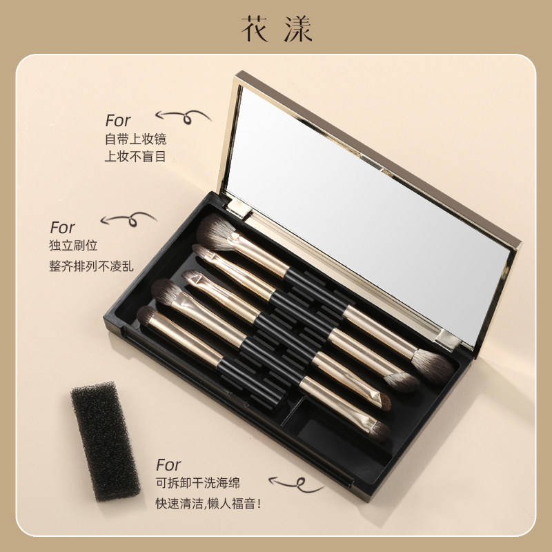 花漾小金盘便携套刷9头多功能镰刀刷鼻影眼影刷晕染刷唇刷送镜盒