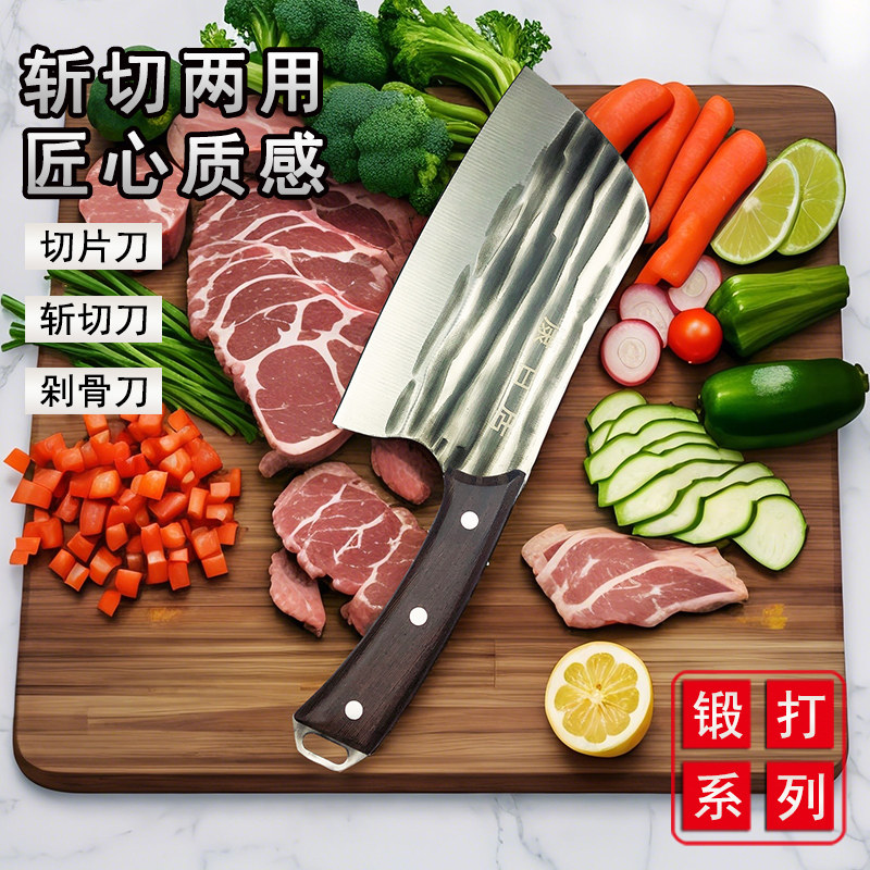 锻打斩切两用刀锋利切片剁骨木柄