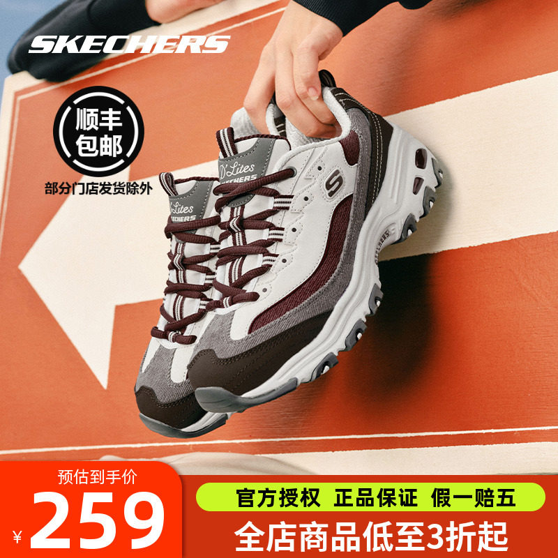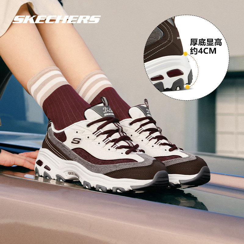 斯凯奇女鞋新款 官方旗舰店奶茶熊猫鞋黑糖烤奶增高跟运动老爹鞋