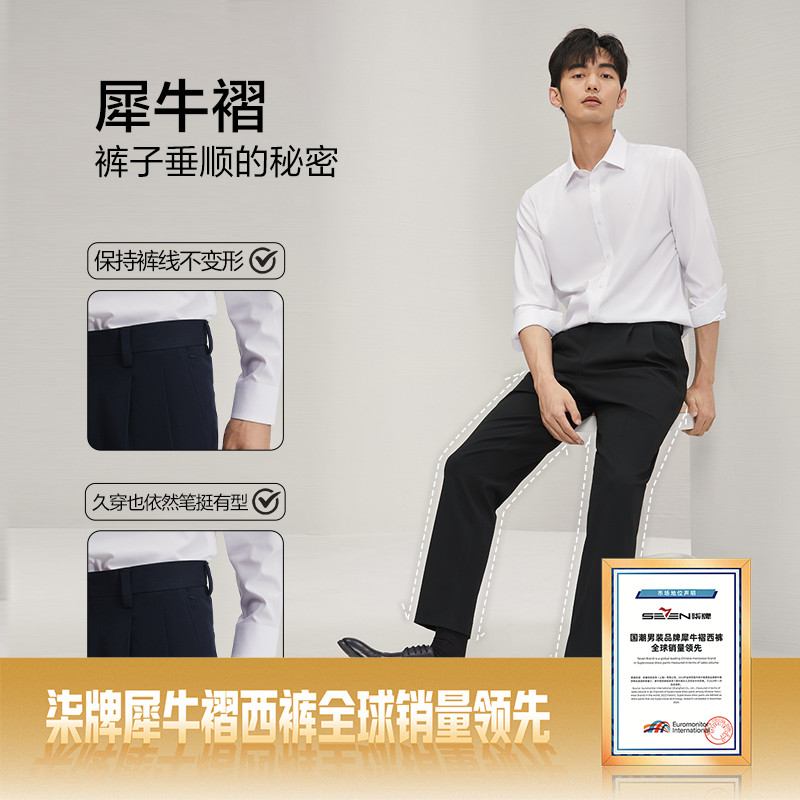 【犀牛褶/双褶裤】柒牌西裤男正装秋季商务通勤上班双褶直筒长裤