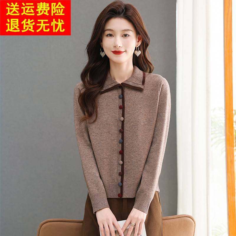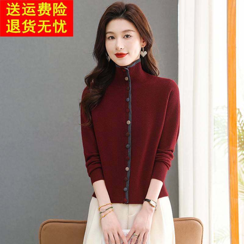 灰色毛衣女士针织衫高领彩扣上衣时尚洋气打底羊毛衫翻领内搭秋冬