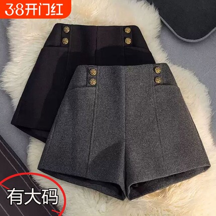 设计感小众黑色毛呢短裤女2026春秋新款大码高腰显瘦a字外穿靴裤
