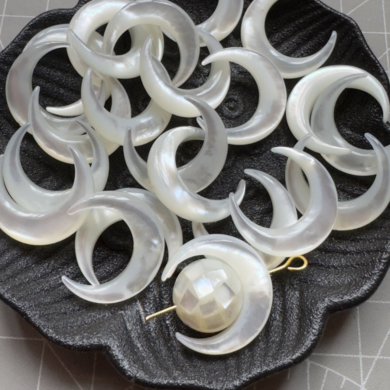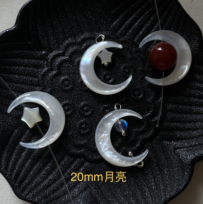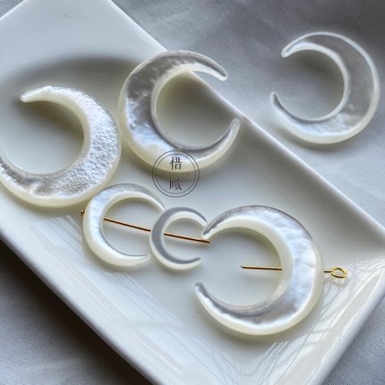 白蝶贝月亮侧孔diy吊坠耳饰头饰饰品配件蝶贝直孔月亮骨兰