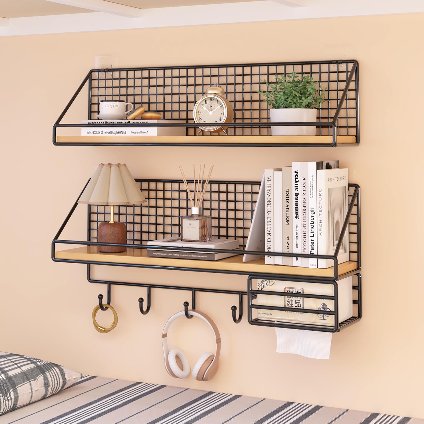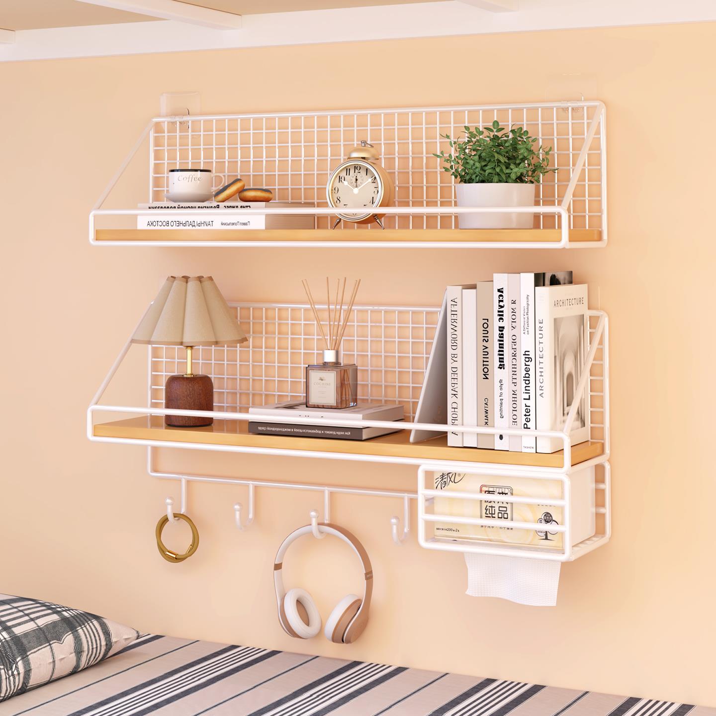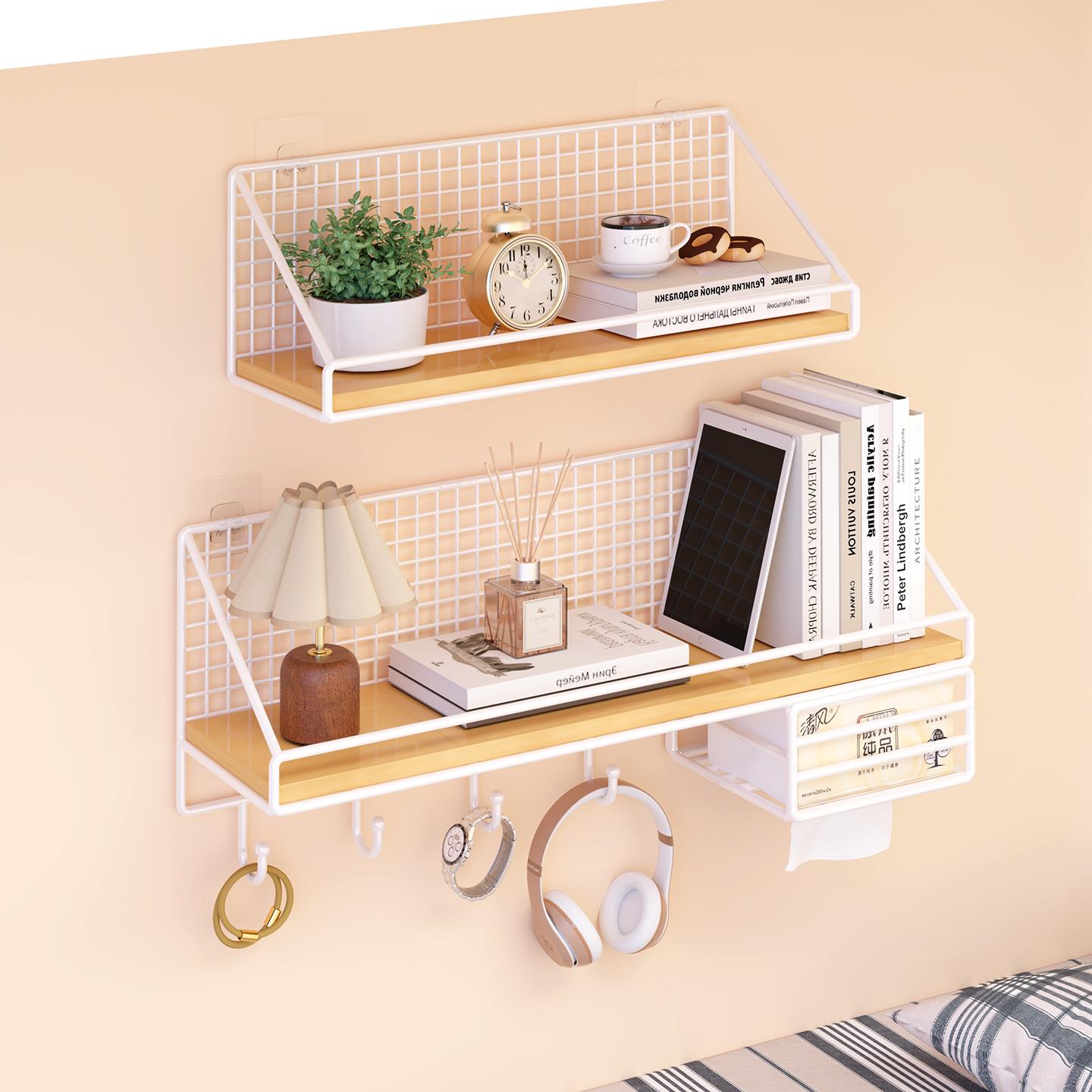 免打孔墙上置物架宿舍床头书架壁挂式收纳架墙壁悬挂实木隔板挂篮