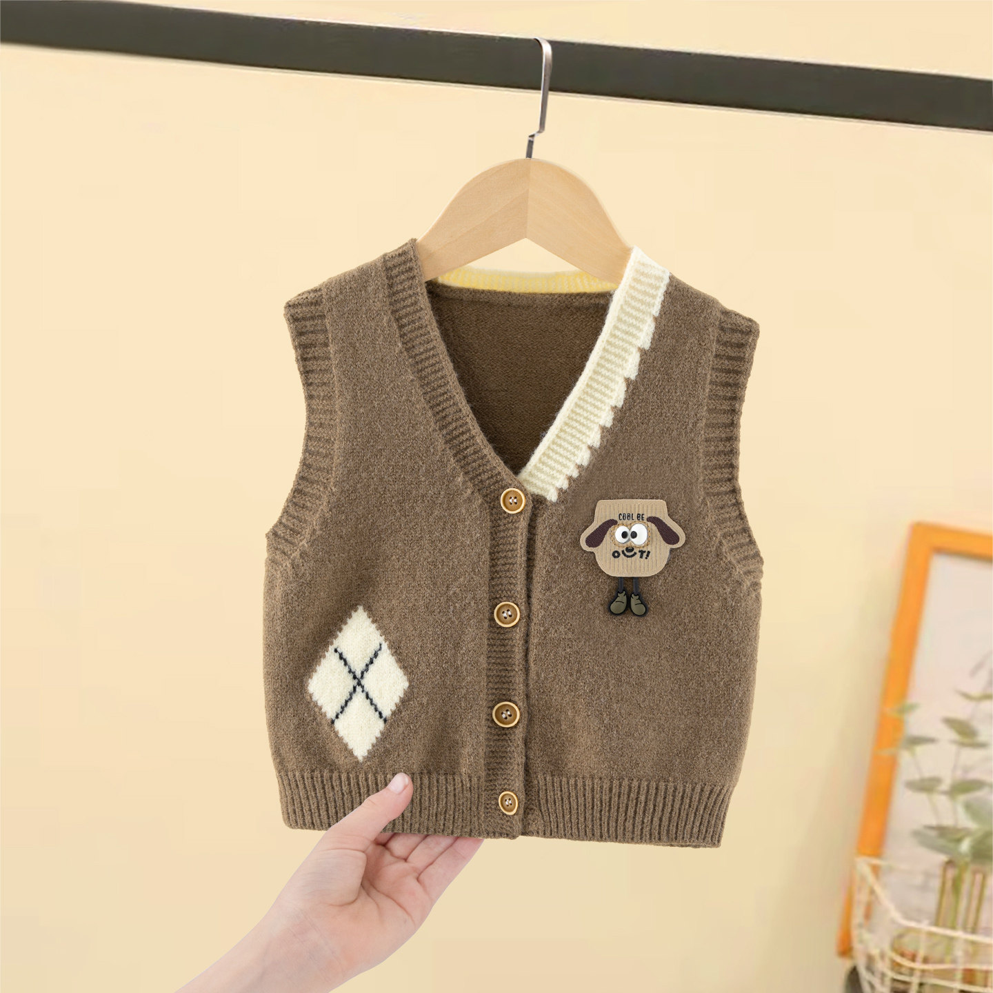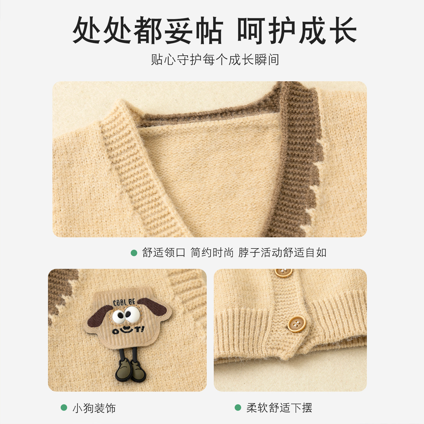儿童针织马甲秋冬款男童宝宝背心婴儿春秋季坎肩外穿开衫V领1保暖