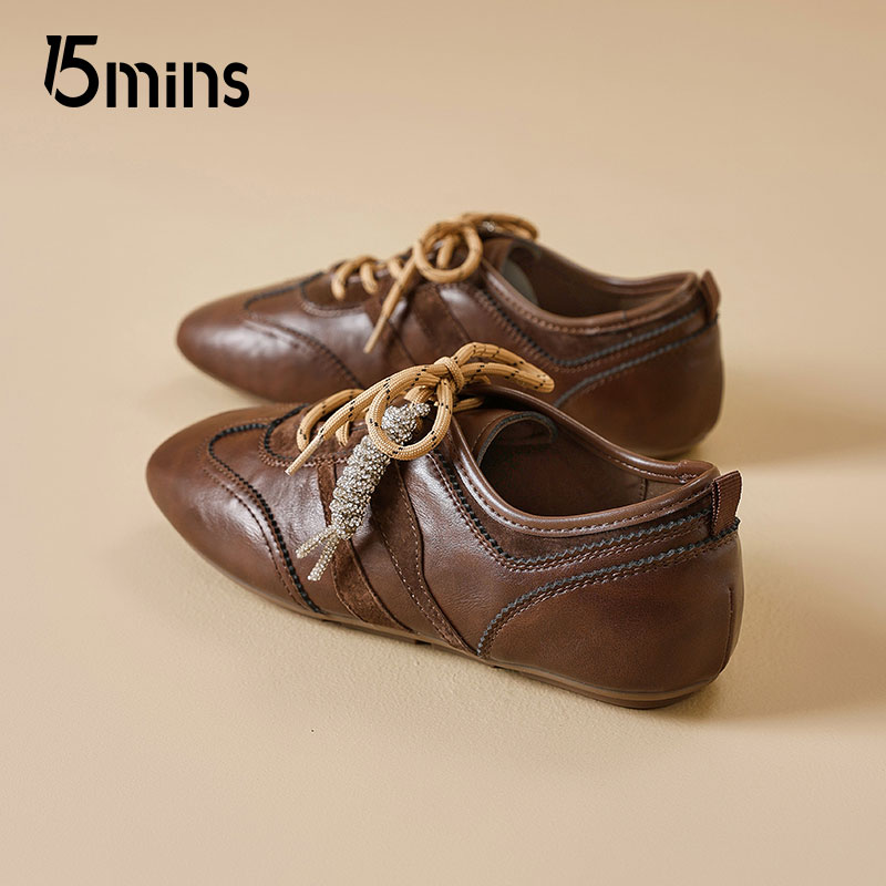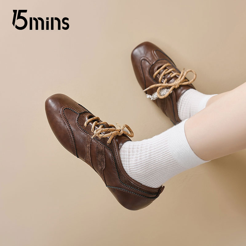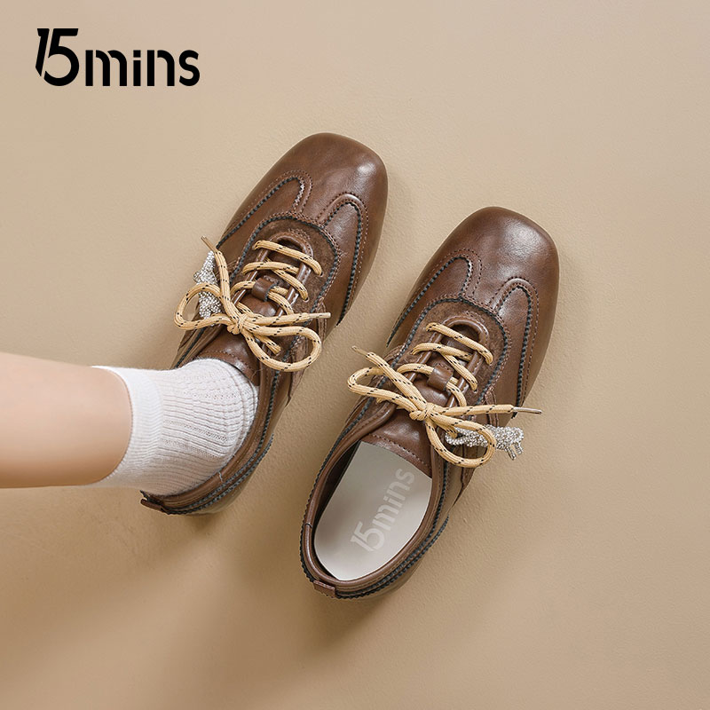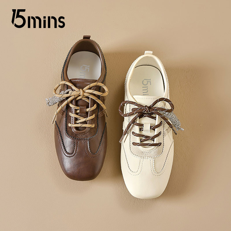 15mins皮面德训鞋女款2025夏