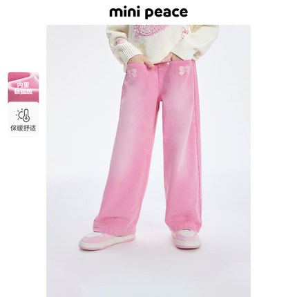 MINIPEACE太平鸟童装女童牛仔裤冬季加绒粉色儿童直筒阔腿裤子