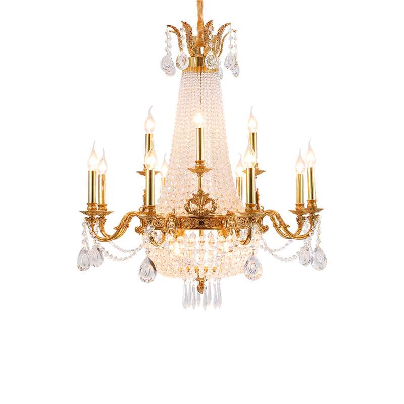 法式全铜水晶吊灯欧式客厅餐厅灯奢华别墅复式楼大厅网红楼梯灯具