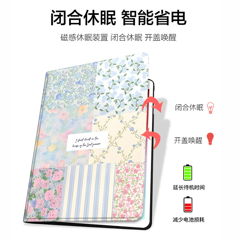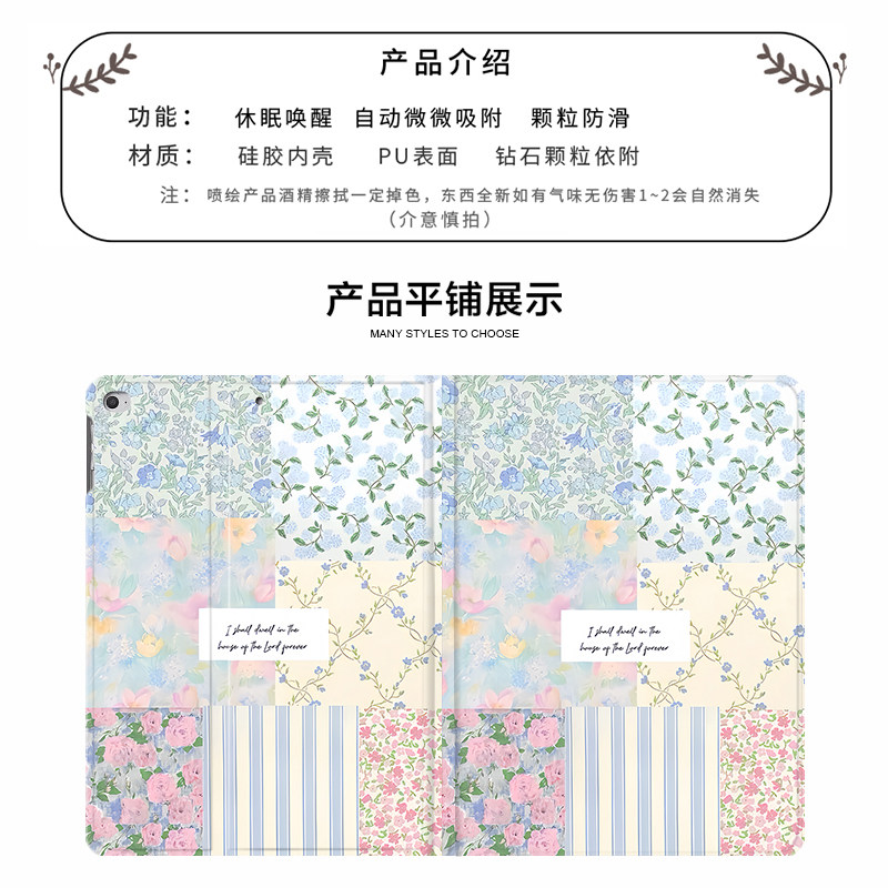 文艺风小碎花2021/20/19新款ipad适用air4/3/2气囊保护套10.2/9.7寸平板2018笔槽pro11三折mini4/5苹果123壳6