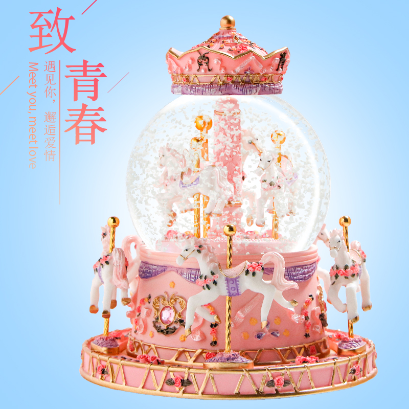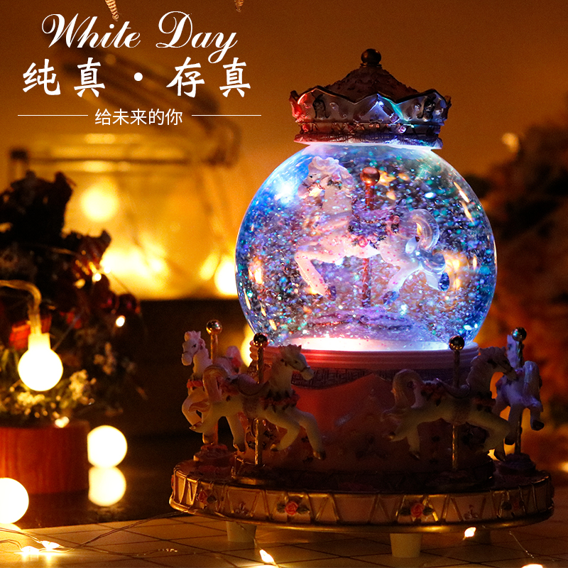 旋转木马水晶球音乐盒八音盒送儿童女生闺蜜同学创意礼品生日礼物