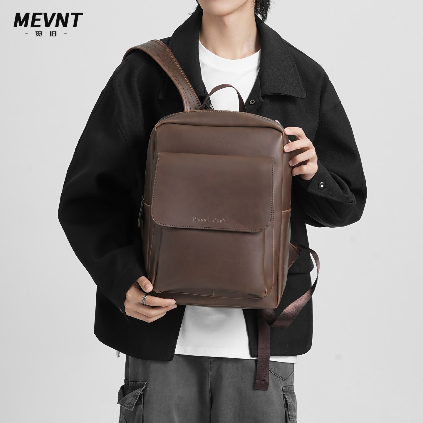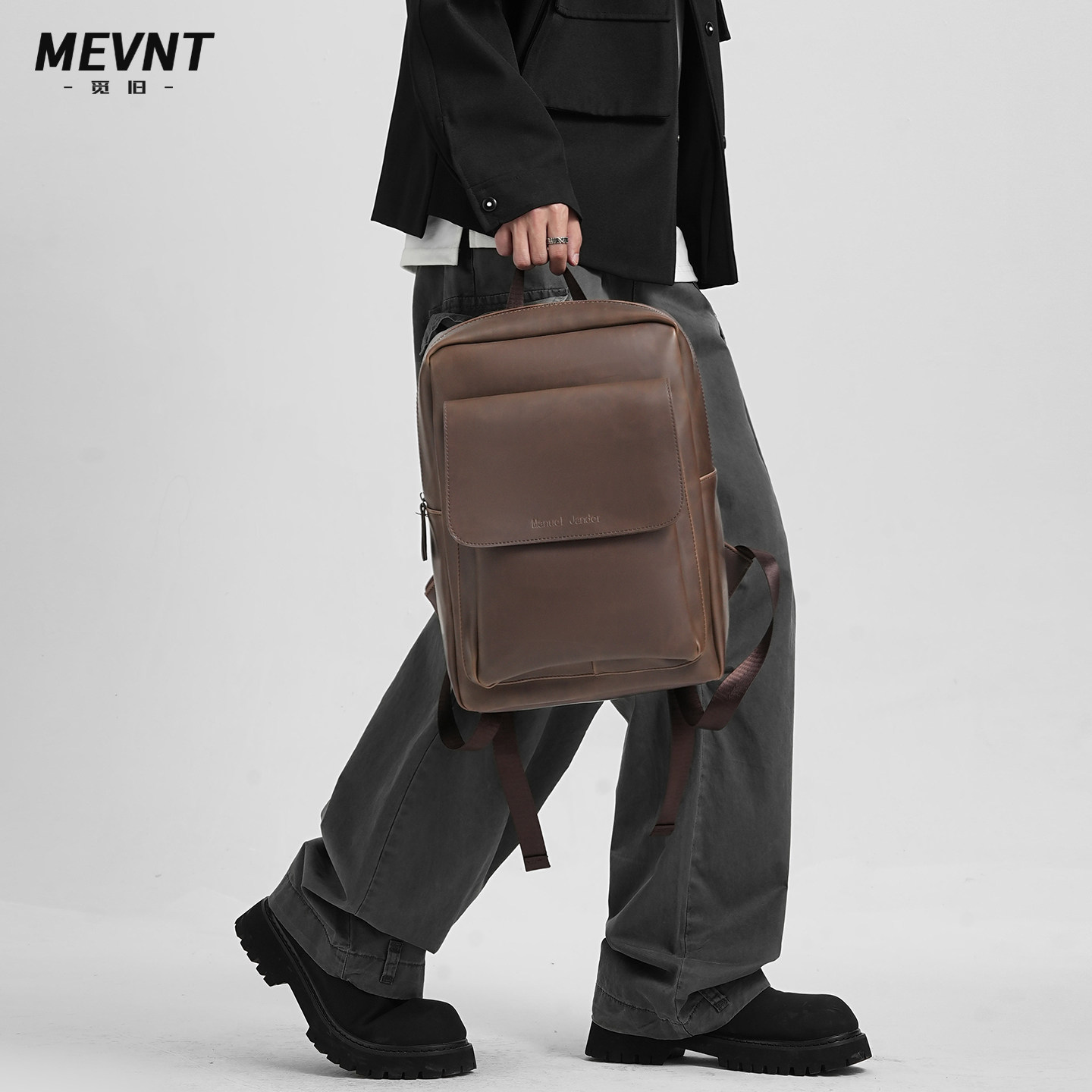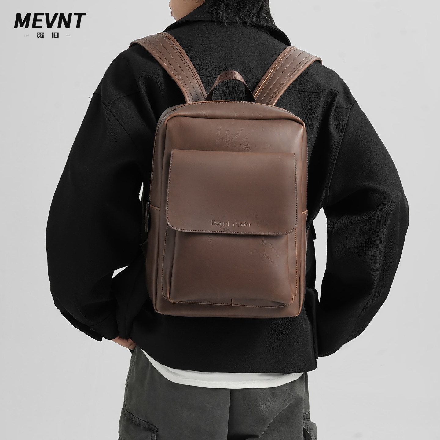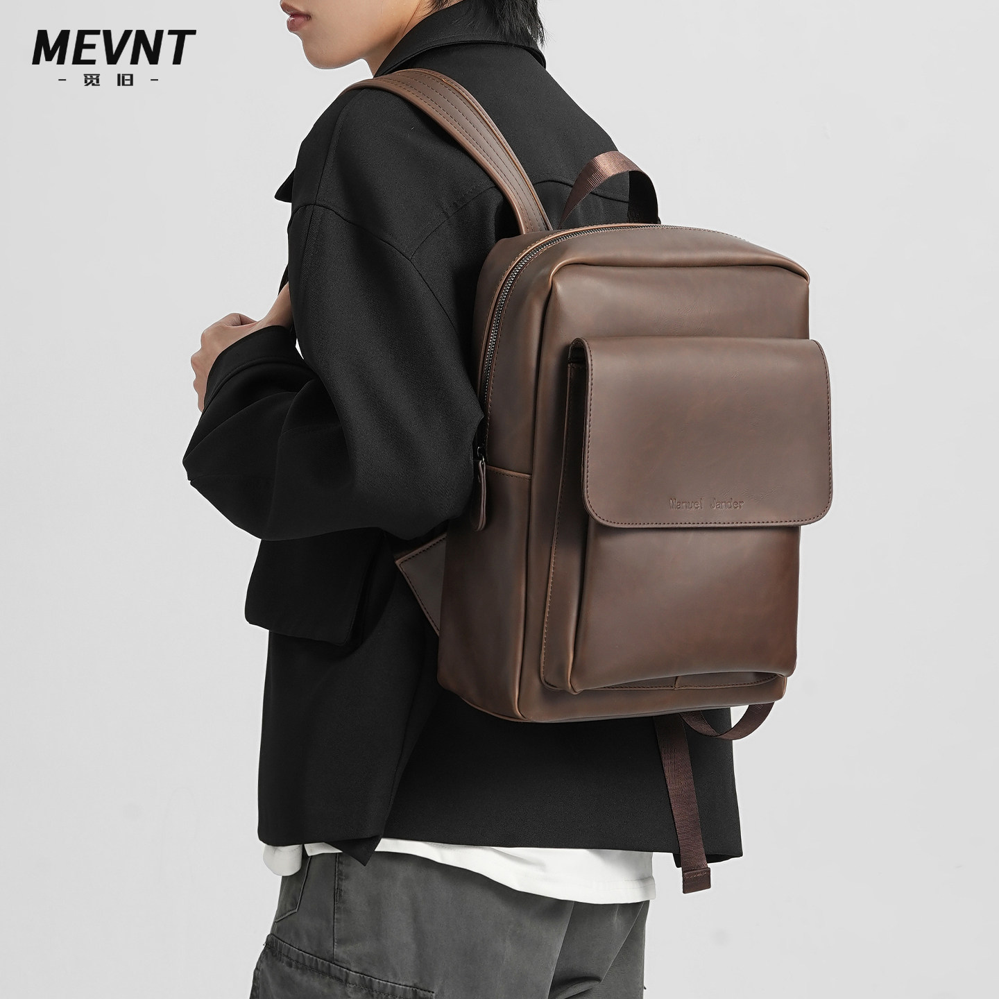 觅旧高级感双肩包男书包14寸16寸通勤皮质电脑男士商务出差背包