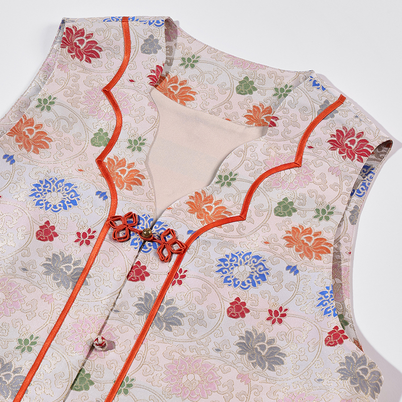 中国丝绸隆鹊【上久楷 金边缠枝莲 】宋锦新中式时尚百搭设计马甲