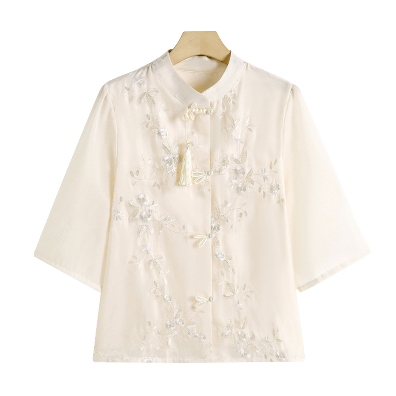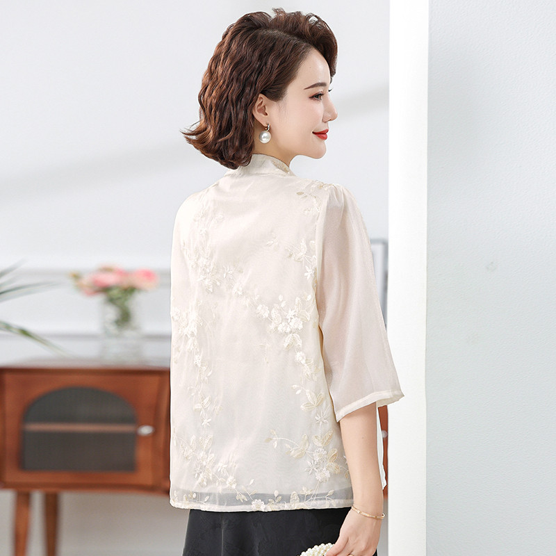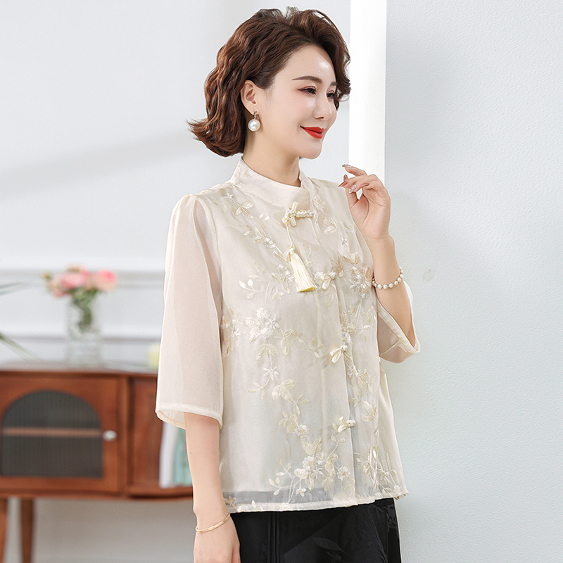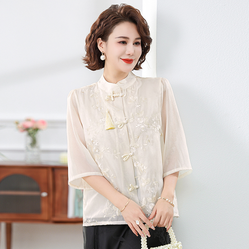 妈妈春夏时尚国风中式七分袖衬衫