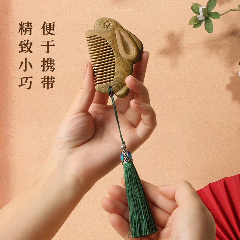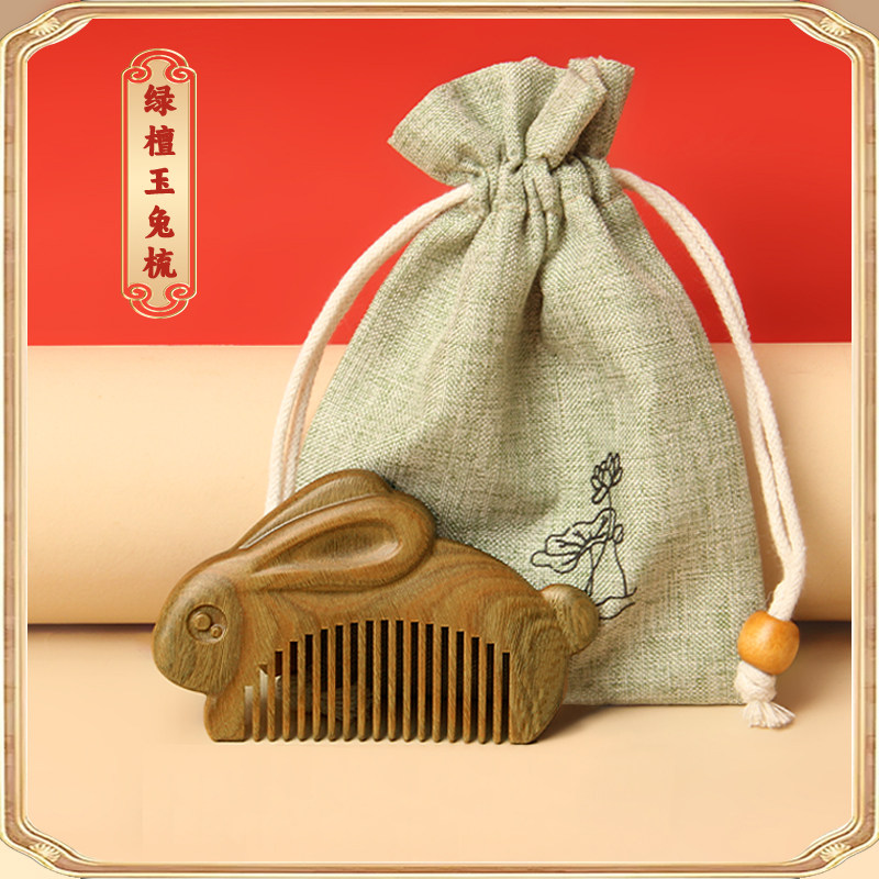 绿檀木梳兔子生肖可爱梳子宝宝周岁抓周梳儿童婴儿一周岁生日礼物