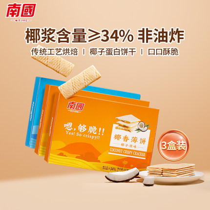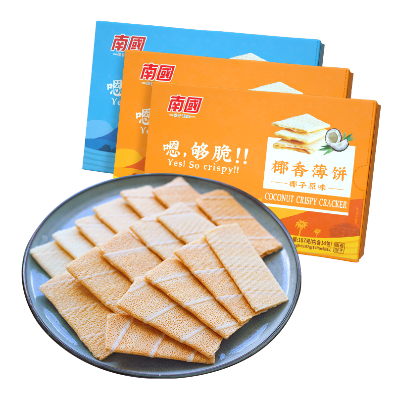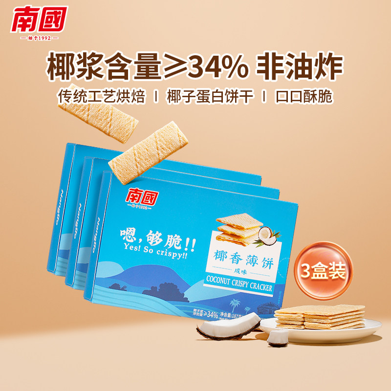 海南特产南国椰香薄饼187gx3盒
