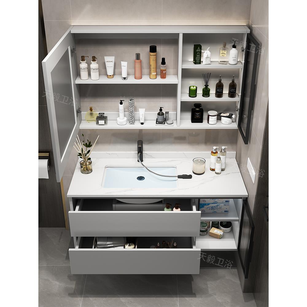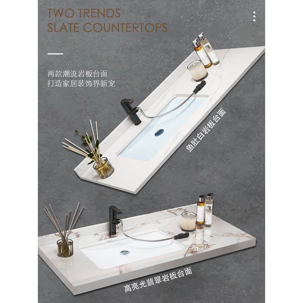 智能轻豪华板岩集成浴室柜组合现代浴室实木洗脸盆盆存储
