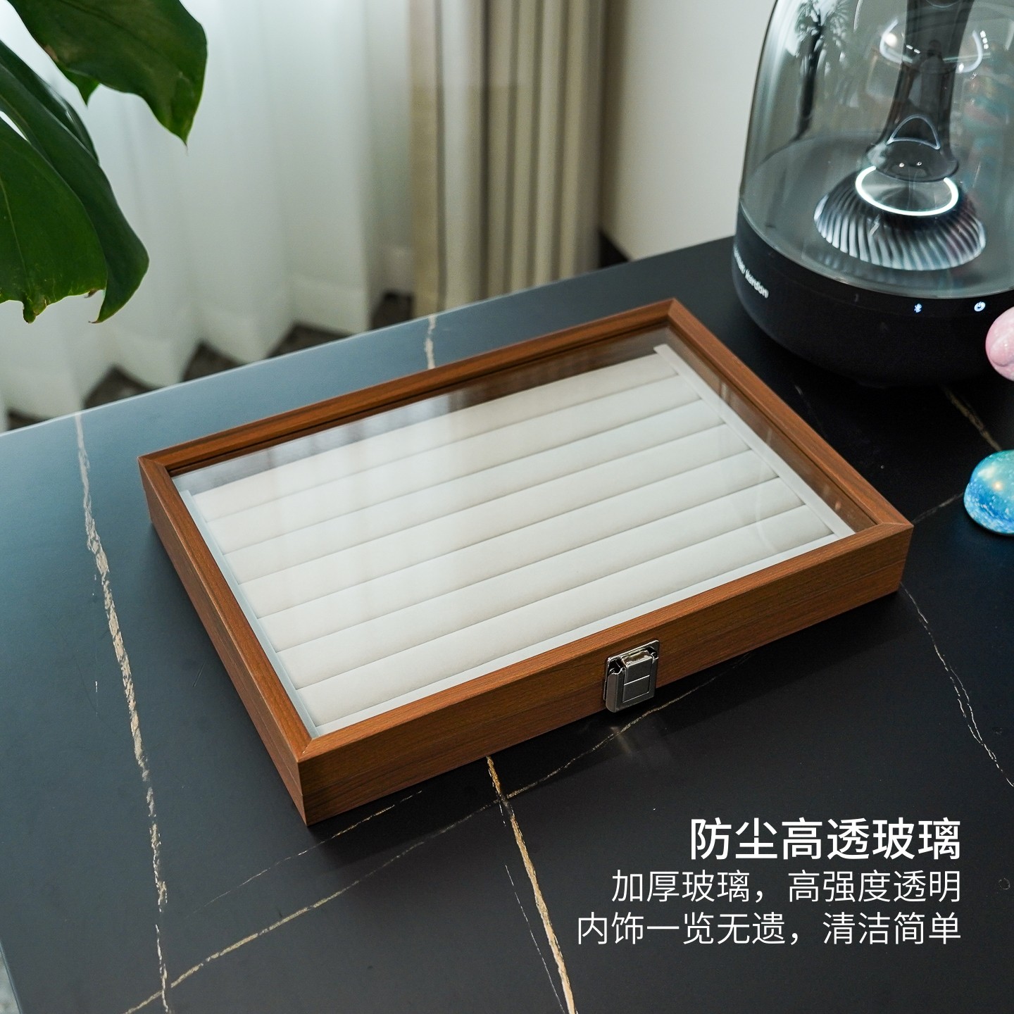 8条黑胡桃纹木质戒指首饰收纳盒珠宝箱 高级感卧室耳环饰品展示盒