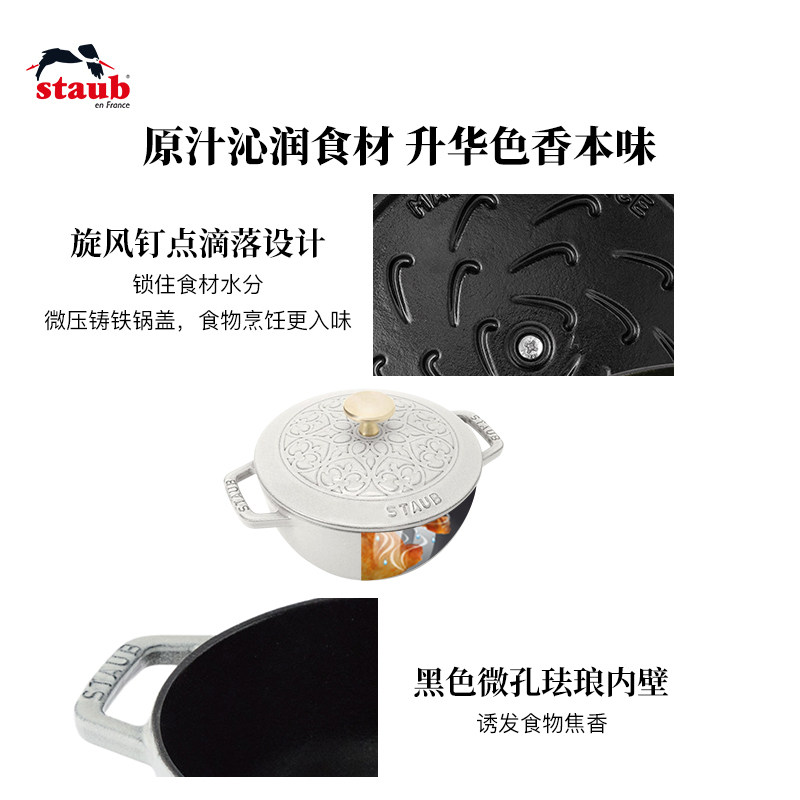 STAUB珐宝16cm多用锅图案锅珐琅铸铁锅家用汤煲炖锅