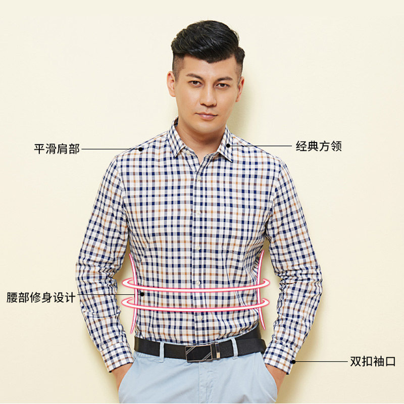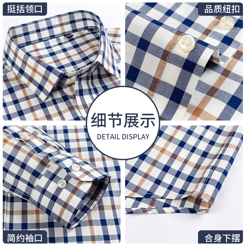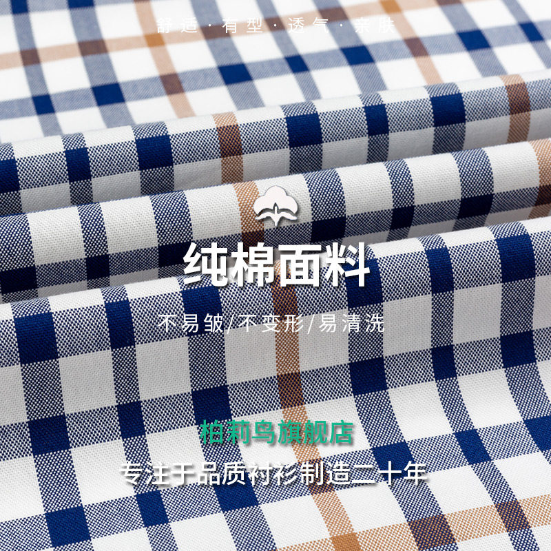 柏莉鸟春秋纯棉格子衬衫男士长袖中年全棉薄款休闲大码外套衬衣