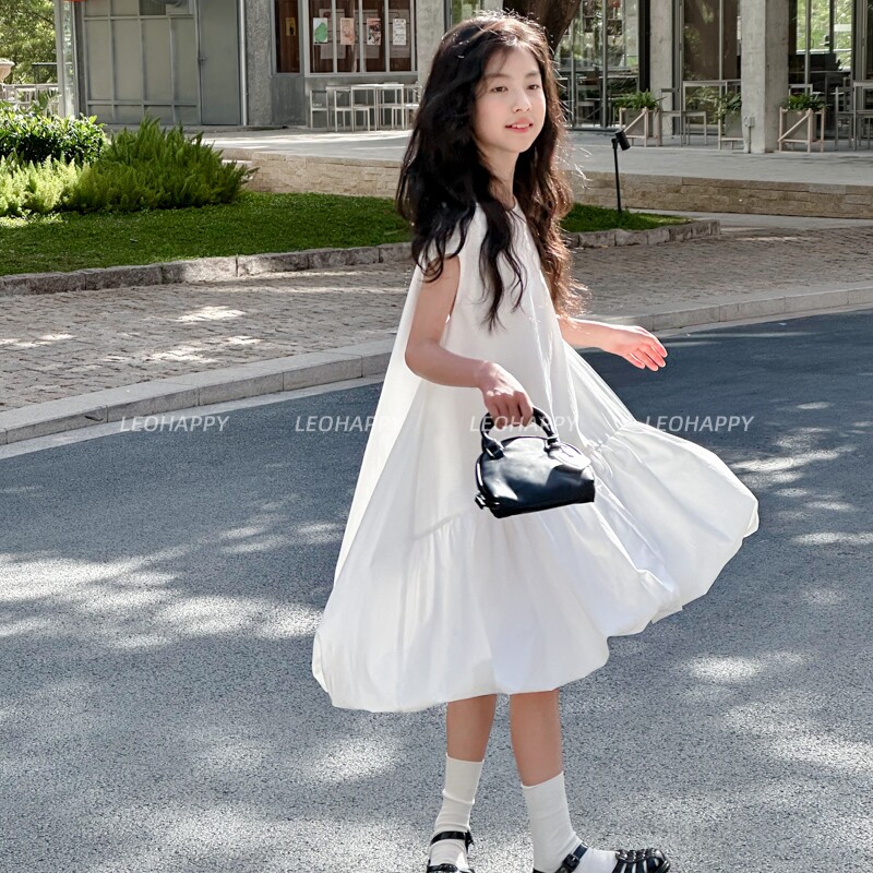 LEOHAPPY女童连衣裙春夏新款儿童花苞蓬蓬裙中大童洋气背心裙N