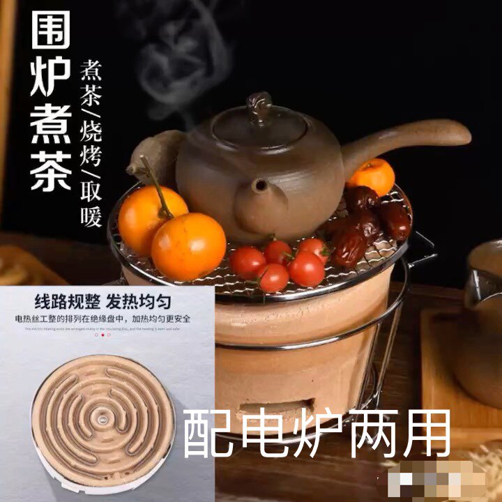 围炉煮茶陶土碳火炉砂锅老式打边炉火锅加厚电碳两用烧烤炉烧水壶