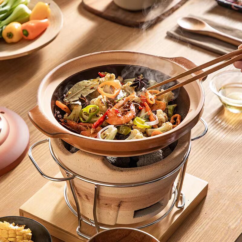陶泥土烧烤炉打边炉户外炭炉酒精
