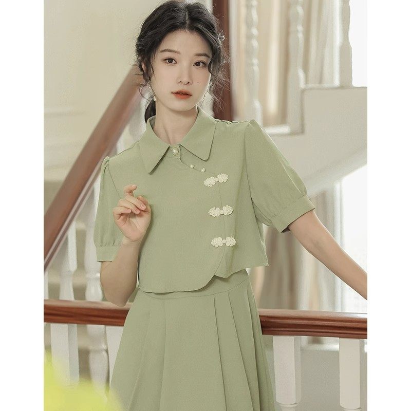新中式少女学院风学生礼服旗袍假两件复古国风气质连衣裙夏季新款