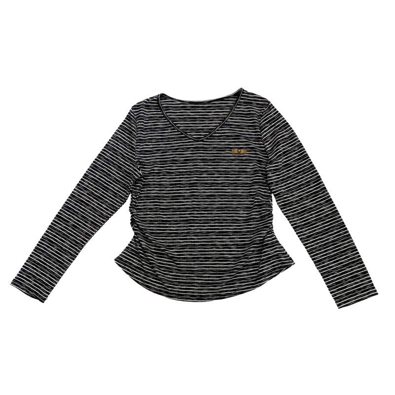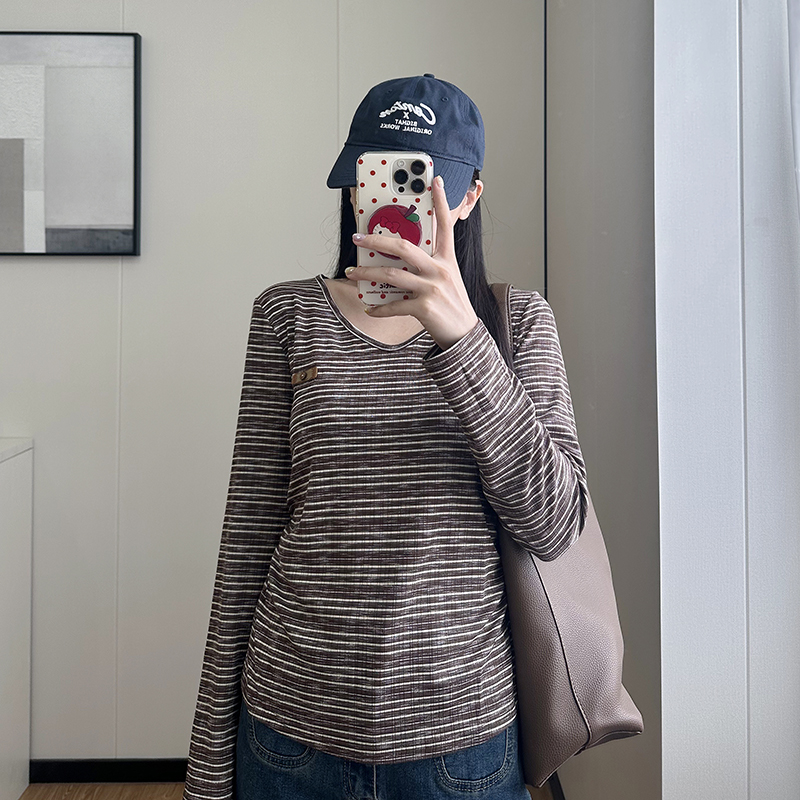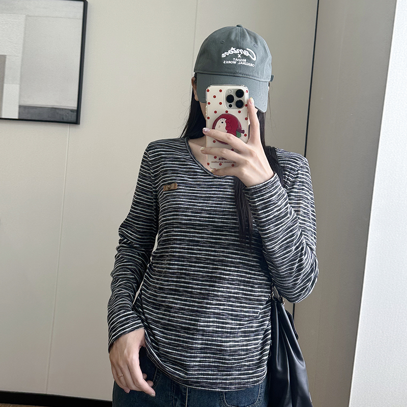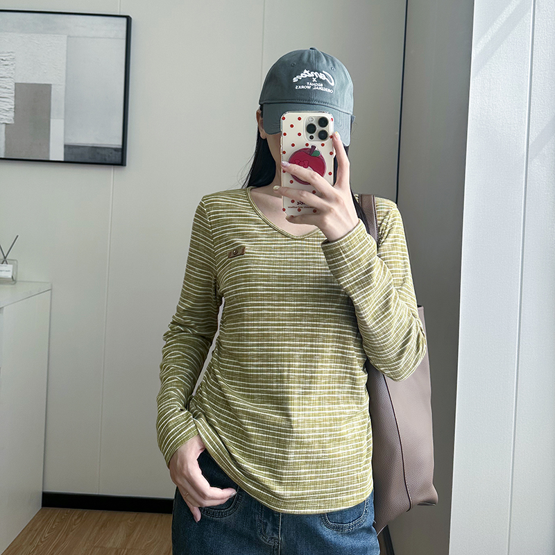 大码女装2025新款春秋季微胖MM200斤修身显瘦正肩长袖条纹T恤上衣