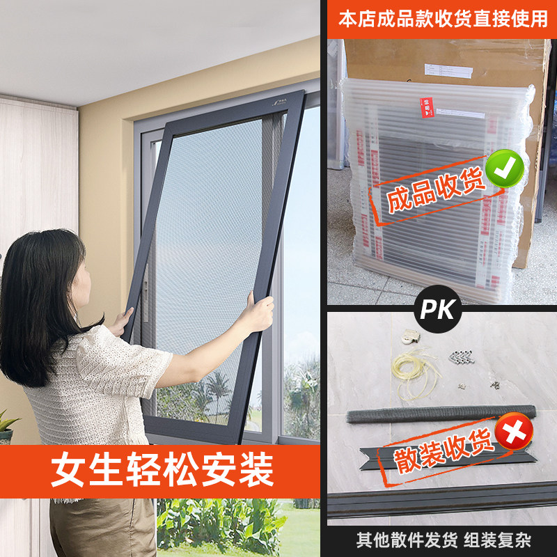 纱窗推拉式高清金刚网纱窗网自装铝合金平移推拉窗户防蚊窗纱定制
