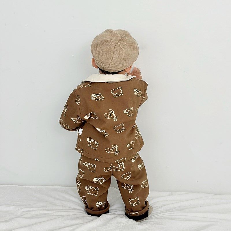 男童冬装卡通加绒外套洋气女宝宝加厚背带裤子婴儿保暖打底衫套装