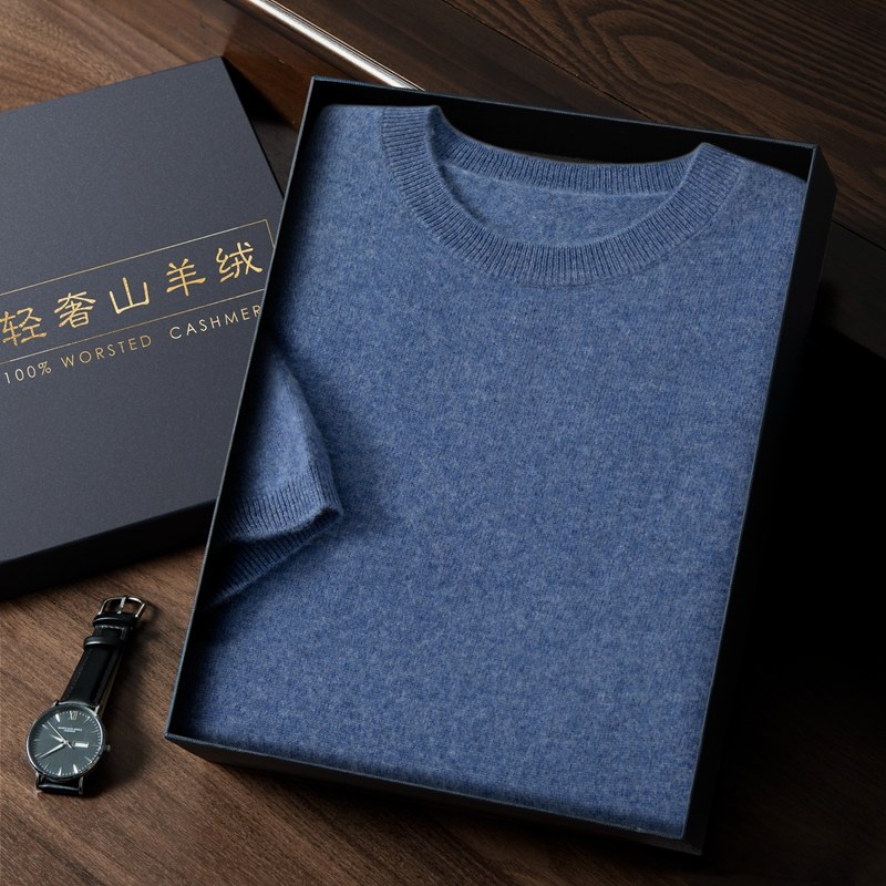 四季可穿的男款高端山羊绒短袖毛衣软糯简约圆领宽松打底衫上衣