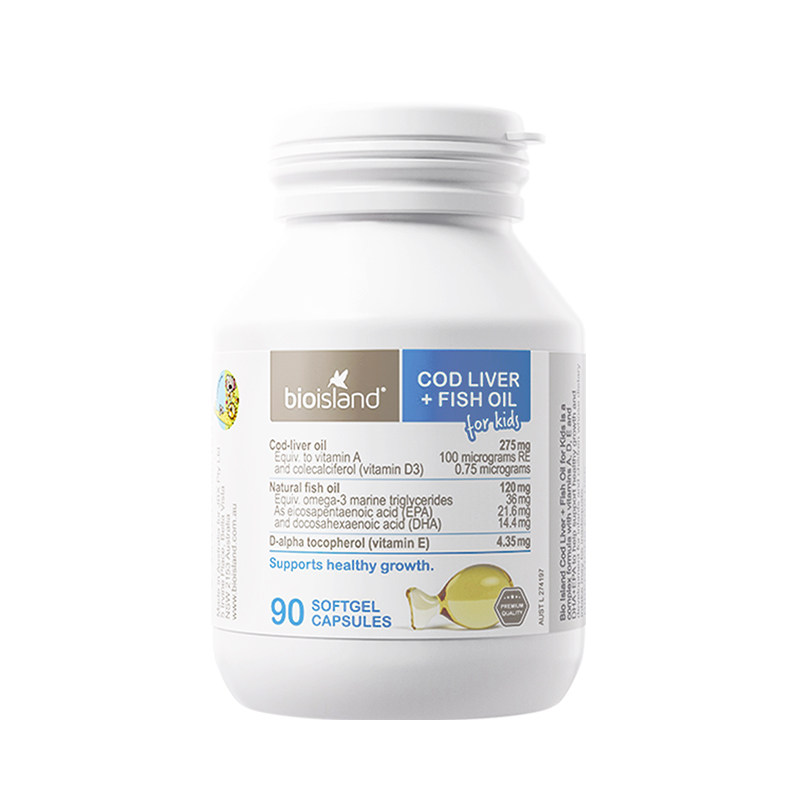 澳洲进口bioisland佰澳朗德青少年儿童鳕鱼肝油胶囊补DHA补脑力