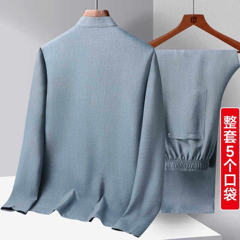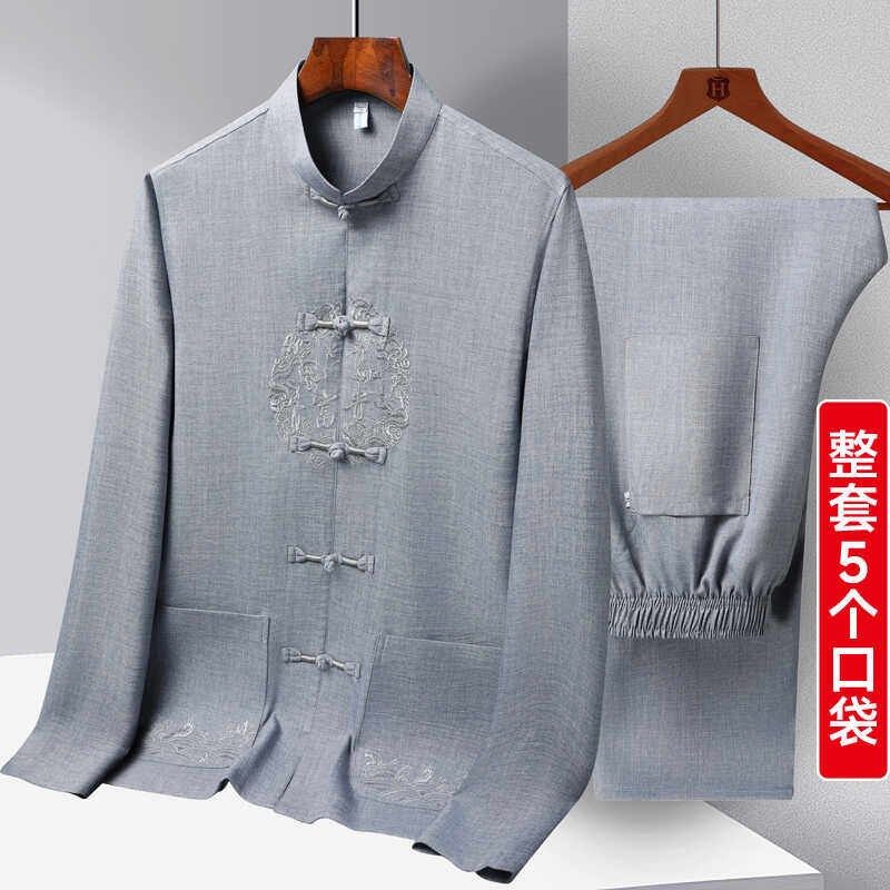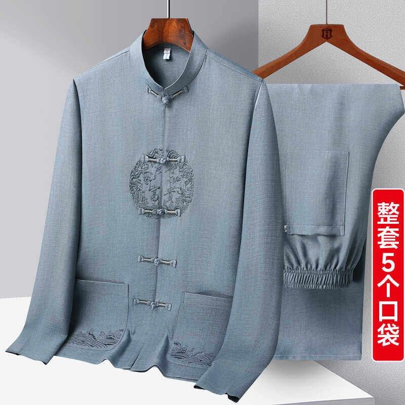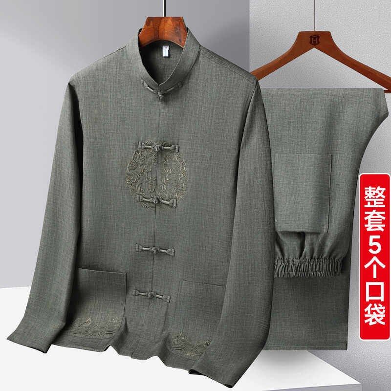 中老年男士棉麻短袖唐装套装爸爸夏装中国风汉服爷爷老年人衣服男