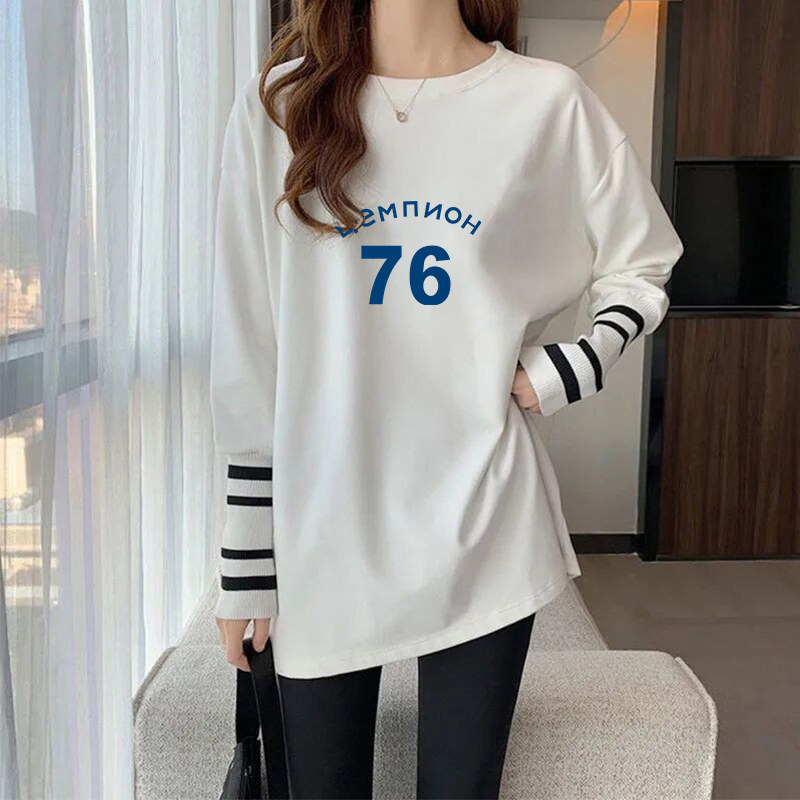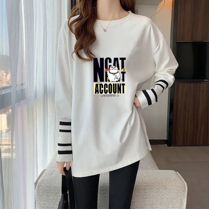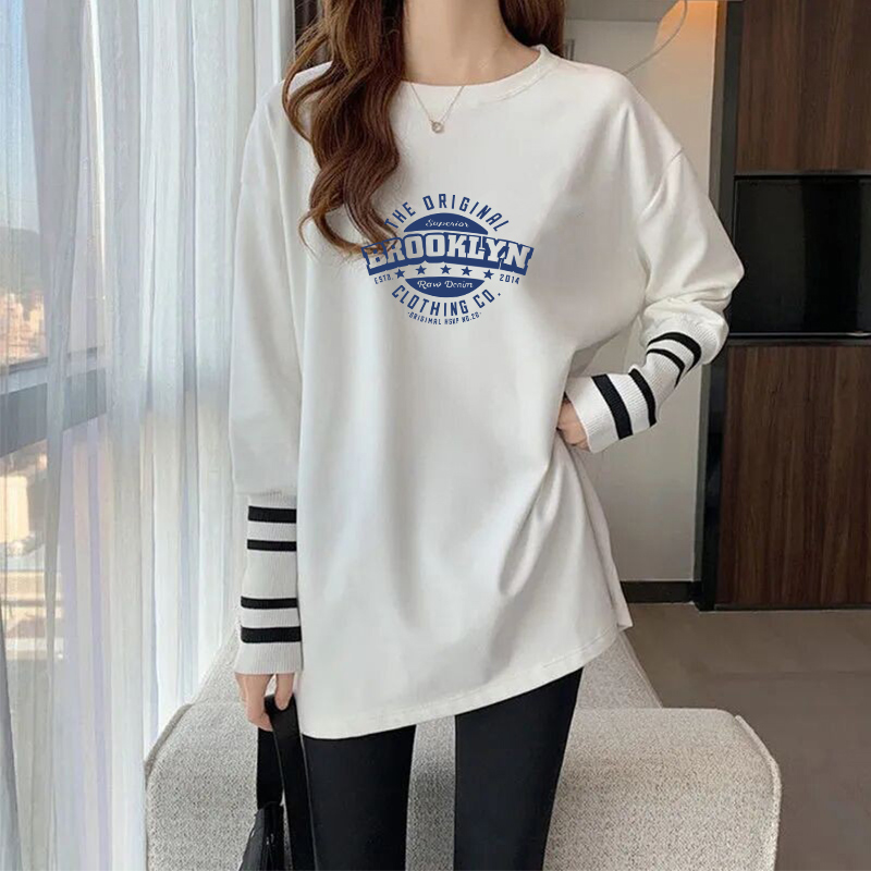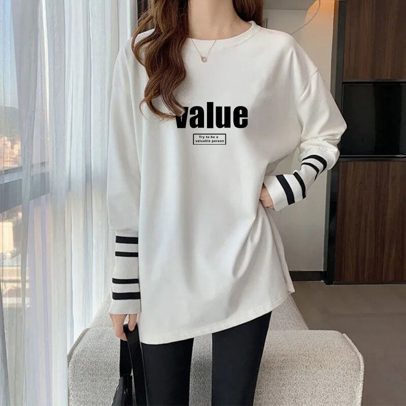 纯棉春秋新款卫衣内搭长袖t恤白色打底衫女宽松大码中长款ins上衣