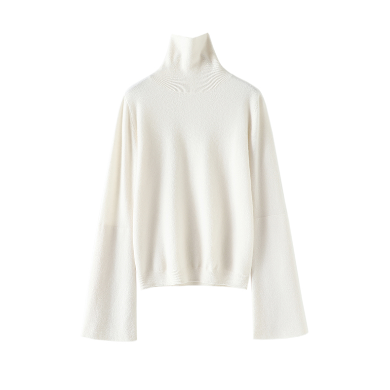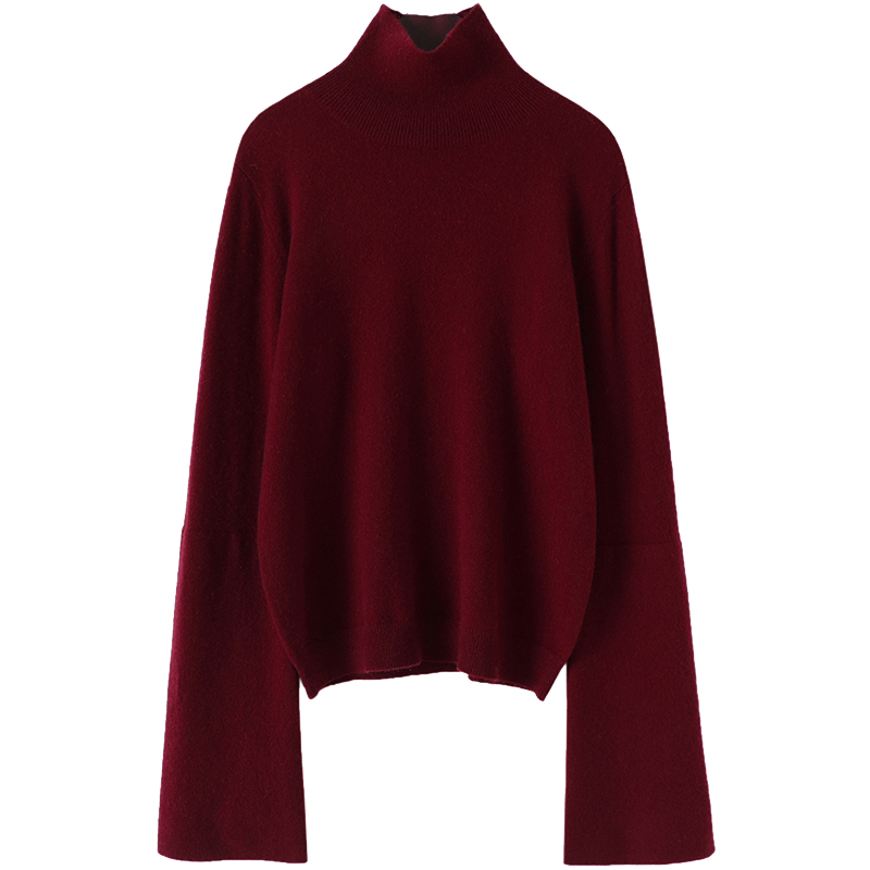 爆爱巨美~酒红色双层大廓袖高领羊绒衫女纯羊绒毛衣套头2023秋冬