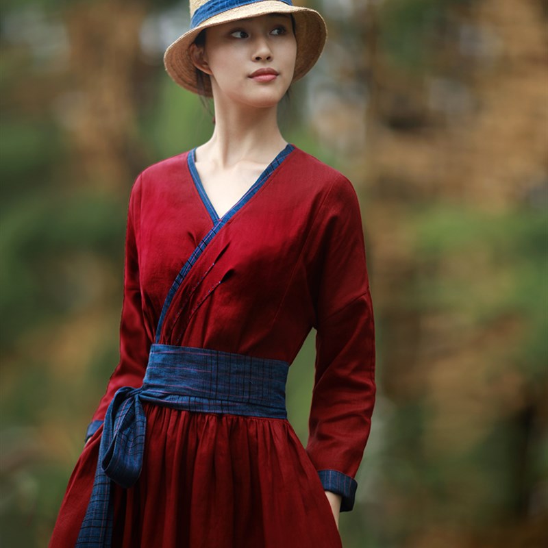 2021年秋装新款纯亚麻连衣裙中国风女装文艺复古收腰显瘦气质长裙